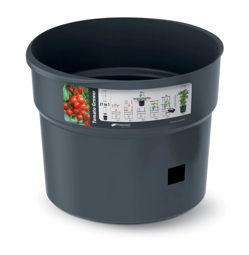 Praktický kvetináč pre mestské záhradníčenie s objemom 18 l a integrovanou oporou pre paradajky a ďalšie popínavé rastliny. Odolný plast v antracitovej farbe zabezpečuje dlhú životnosť, zatiaľ čo premyslená konštrukcia podporuje stabilný rast, zdravý koreňový systém a bohatú úrodu aj na balkónoch a terasách.