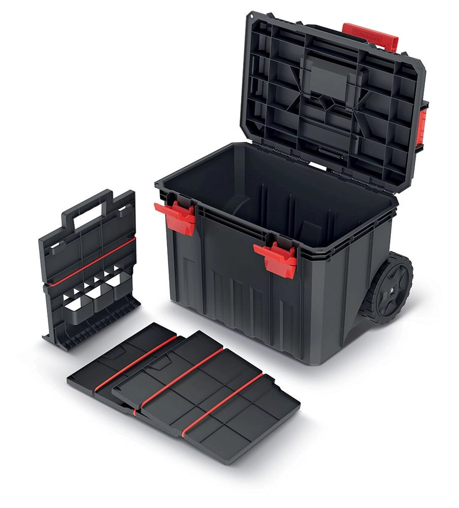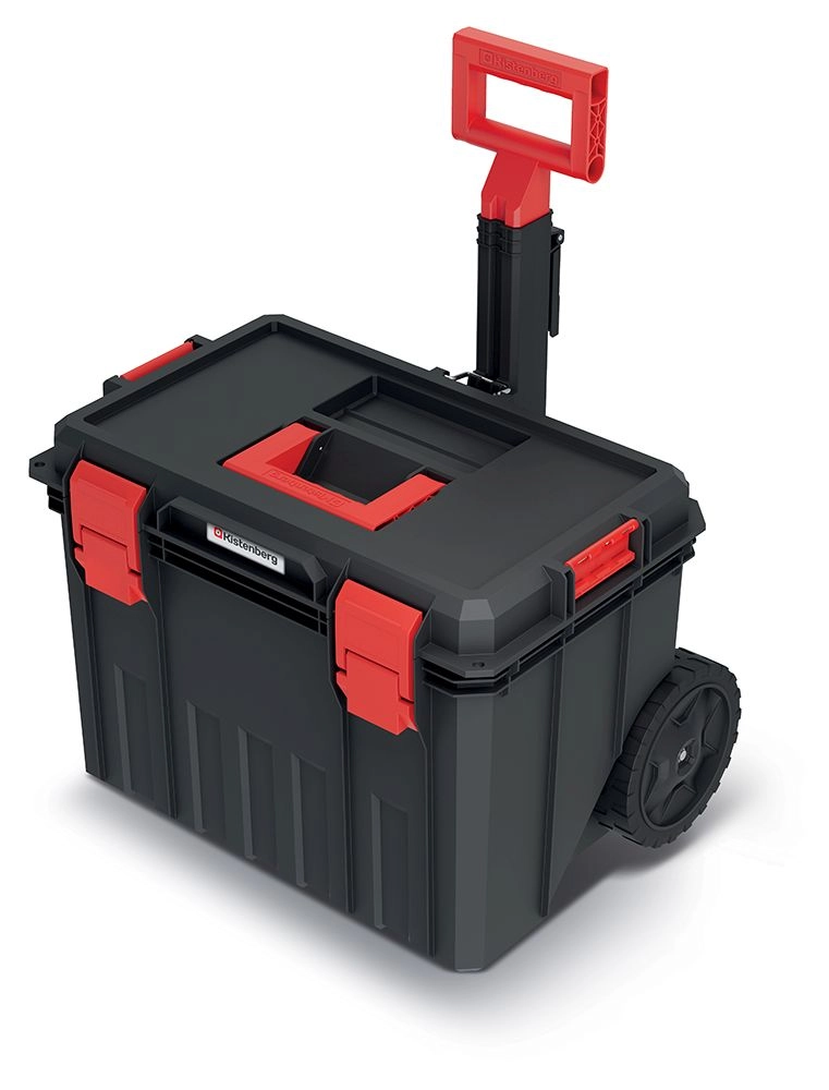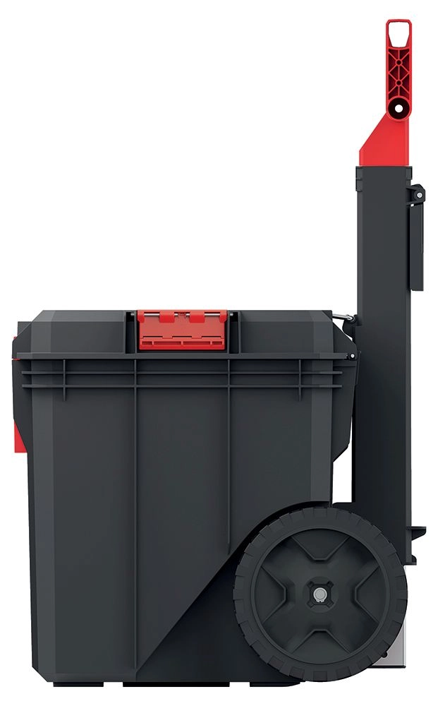 Veľké, odolné kolesá a výsuvná rukoväť umožňujú pohodlný presun aj plne naloženého kufra v dielni, na stavbe či po nerovnom povrchu.