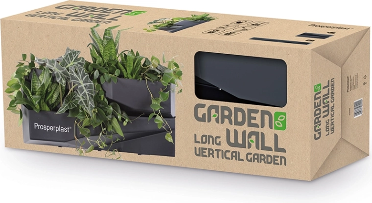 Vytvorte si vlastnú vertikálnu záhradu s nástennými kvetináčmi GARDEN LONG WALL. Moderný geometrický dizajn v antracitovej farbe skvelo ladí s akýmkoľvek štýlom a umožňuje efektívne využitie priestoru na stenách balkóna, terasy aj v interiéri.