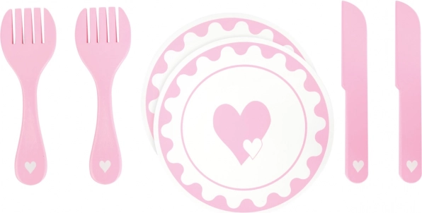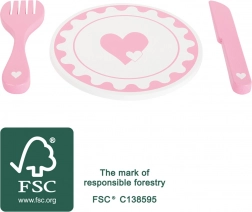 Malý drevený servis je dekorovaný srdiečkami a je vyrobený zo 100% certifikovaného dreva FSC®. Deti nielen poteší krásny dizajn, ale tiež sa naučia niečo o ekológii a udržateľnosti.