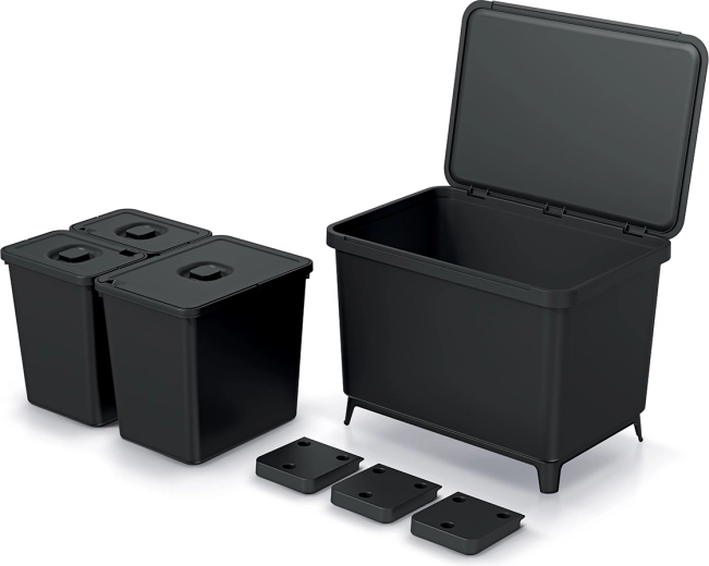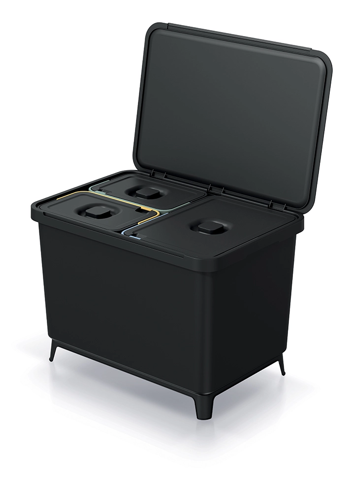 Kôš SYSTEMA je navrhnutý pre každodenné pohodlie aj udržateľnosť. Tri vnútorné nádoby s farebnými rámikmi umožňujú rýchle a prehľadné triedenie, zatiaľ čo uzavreté veko a robustná konštrukcia udržiavajú poriadok a čistotu. Vďaka kompaktným rozmerom skvele zapadne do kuchyne, technickej miestnosti aj kancelárie.