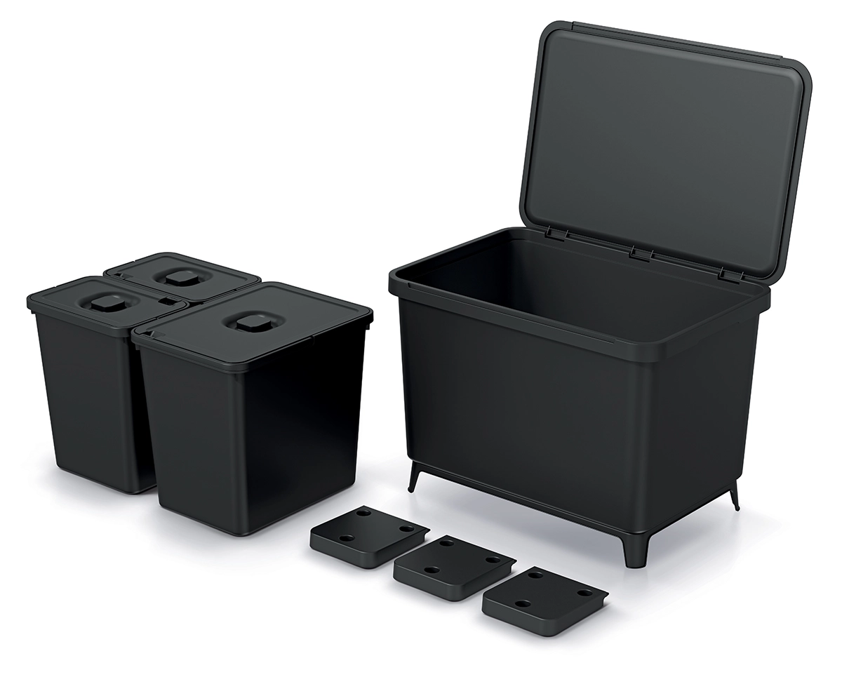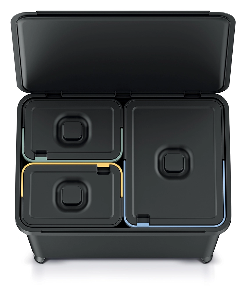 • Tri samostatné nádoby – 1× 23 l na zmesový odpad a 2× 10 l na triedenie.