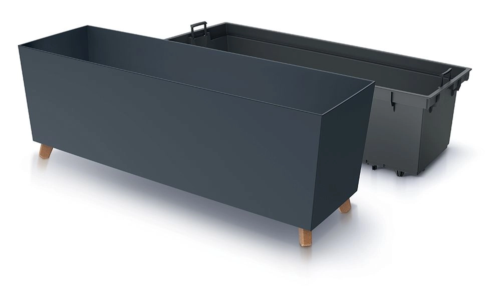Praktická vnútorná vložka s úchytmi umožňuje rýchlu výsadbu a pohodlnú údržbu bez presúvania celého truhlíka.