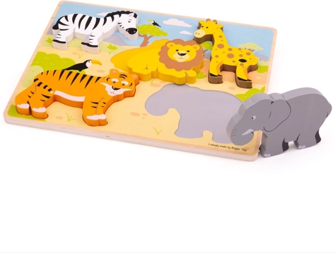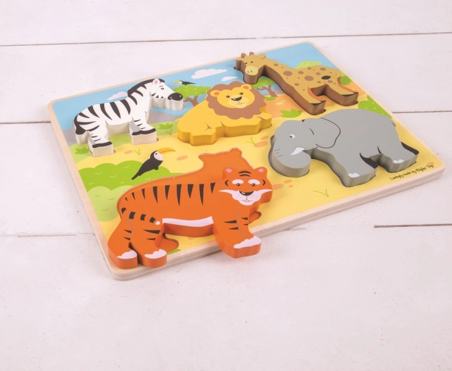 Vyrobené z kvalitného, zodpovedne získaného dreva a navrhnuté tak, aby spĺňalo aktuálne európske bezpečnostné normy. Puzzle obsahuje 5 veľkých dielikov so safari motívmi, ktoré deťom prinášajú radosť z objavovania a učenia.