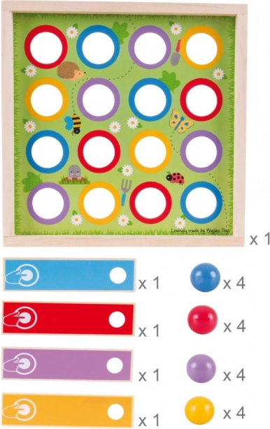Zábavná rodinná hra pre deti od 3 rokov, ktorá rozvíja jemnú motoriku, postreh a koordináciu oko–ruka. Cieľom je pomocou odpaľovačov vystreliť farebné guličky do zodpovedajúcich otvorov na doske. Hra pre 2–4 hráčov v červenej, modrej, žltej a fialovej farbe. Vyrobené zo zodpovedne získaného dreva a spĺňa európske bezpečnostné normy.