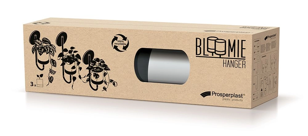 Premeňte prázdnu stenu na zelenú galériu. Sada BLOOMIE HANGER SET ponúka tri kvetináče so závesnými držiakmi, ktoré ušetria miesto na podlahe a dodajú domovu moderný akcent. Neutrálna sivá sa ľahko kombinuje s rôznymi štýlmi interiéru a zvýrazní prirodzenú krásu rastlín.