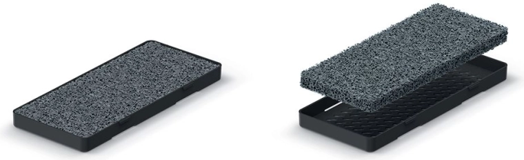 Pórovitá štruktúra aktívneho uhlia pohlcuje pachy a výpary, pomáha udržať čistejší a sviežejší vzduch v okolí koša.