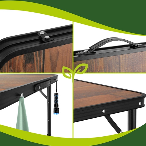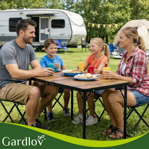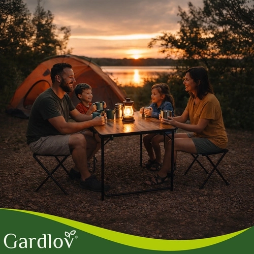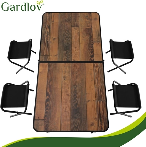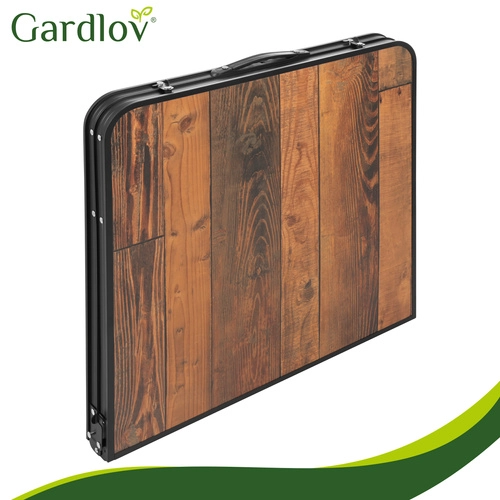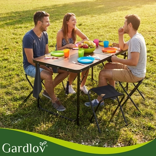 Užite si piknik, kempovanie aj posedenie na terase bez zložitej prípravy. Tento skladací stôl GARDLOV so štyrmi stoličkami sa behom chvíľky rozloží a rovnako rýchlo zase zloží do prenosného kufríka. Dekor dreva na doske pôsobí elegantne, zatiaľ čo odolná kovová konštrukcia a zaisťovacie zámky proti samovoľnému zloženiu držia všetko pevne na mieste.