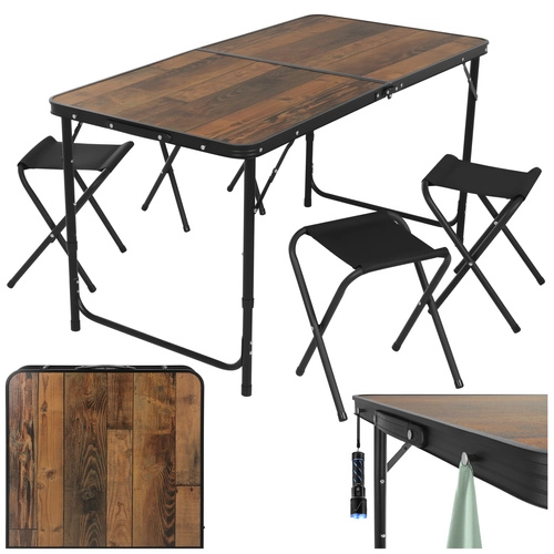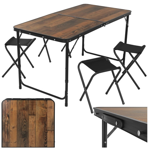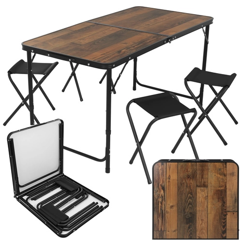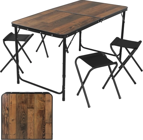 Turistický/kempingový set – skladací stôl + 4 skladacie stoličky
