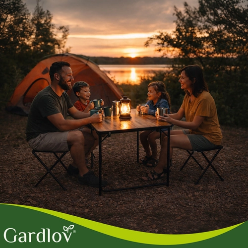Praktický skladací set GARDLOV kombinuje záhradný stôl s nastaviteľnou výškou a 4 skladacie stoličky v jednom. Po zložení vznikne kompaktný kufrík s madlom, ktorý ľahko prenesiete aj uložíte. Odolná konštrukcia, stabilné kovové rámy a protišmykové koncovky zaisťujú pohodlné stolovanie na záhrade, terase aj pri kempovaní.