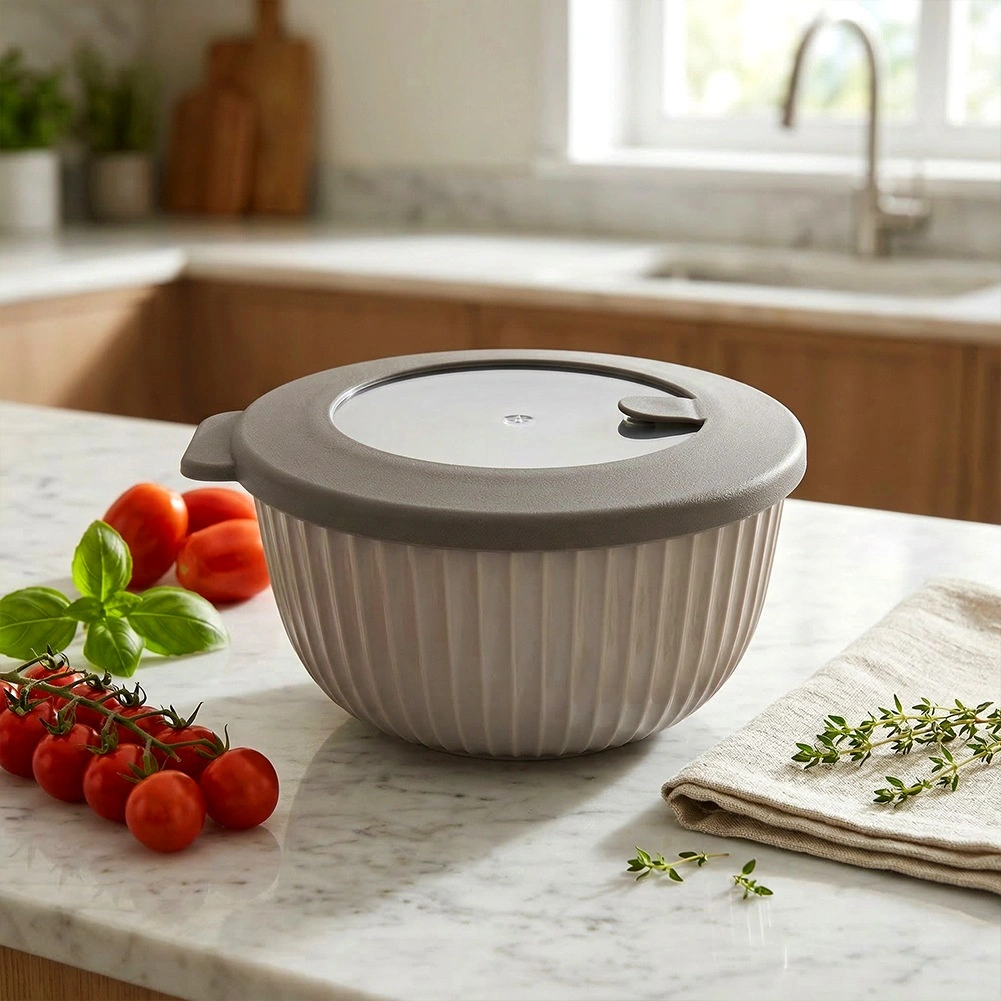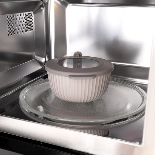 Veko s integrovaným ventilom umožní bezpečné ohrievanie v mikrovlnnej rúre bez prskania. Silikónové tesnenie pomáha udržať čerstvosť a bráni únikom tekutín.