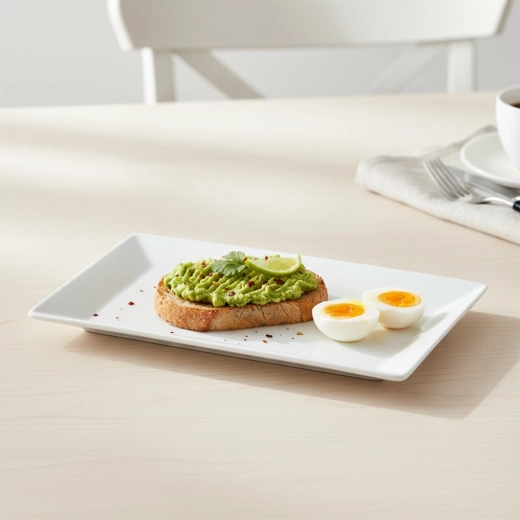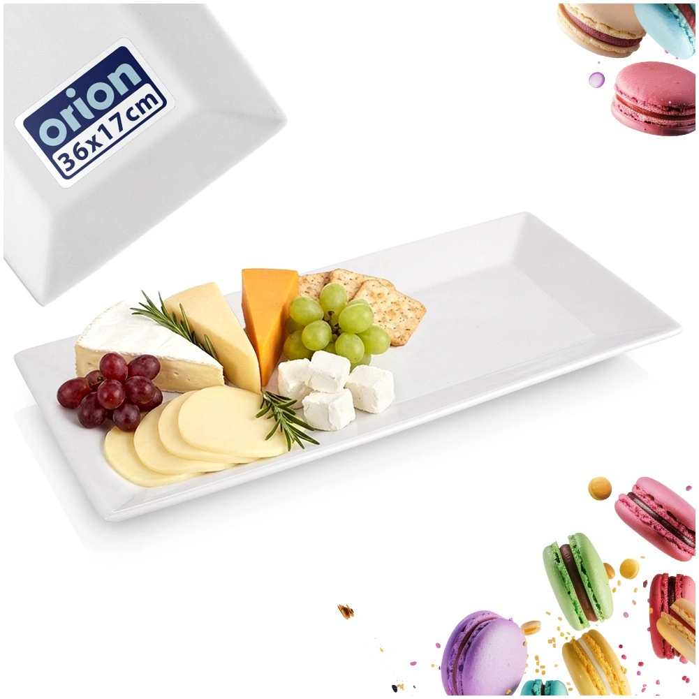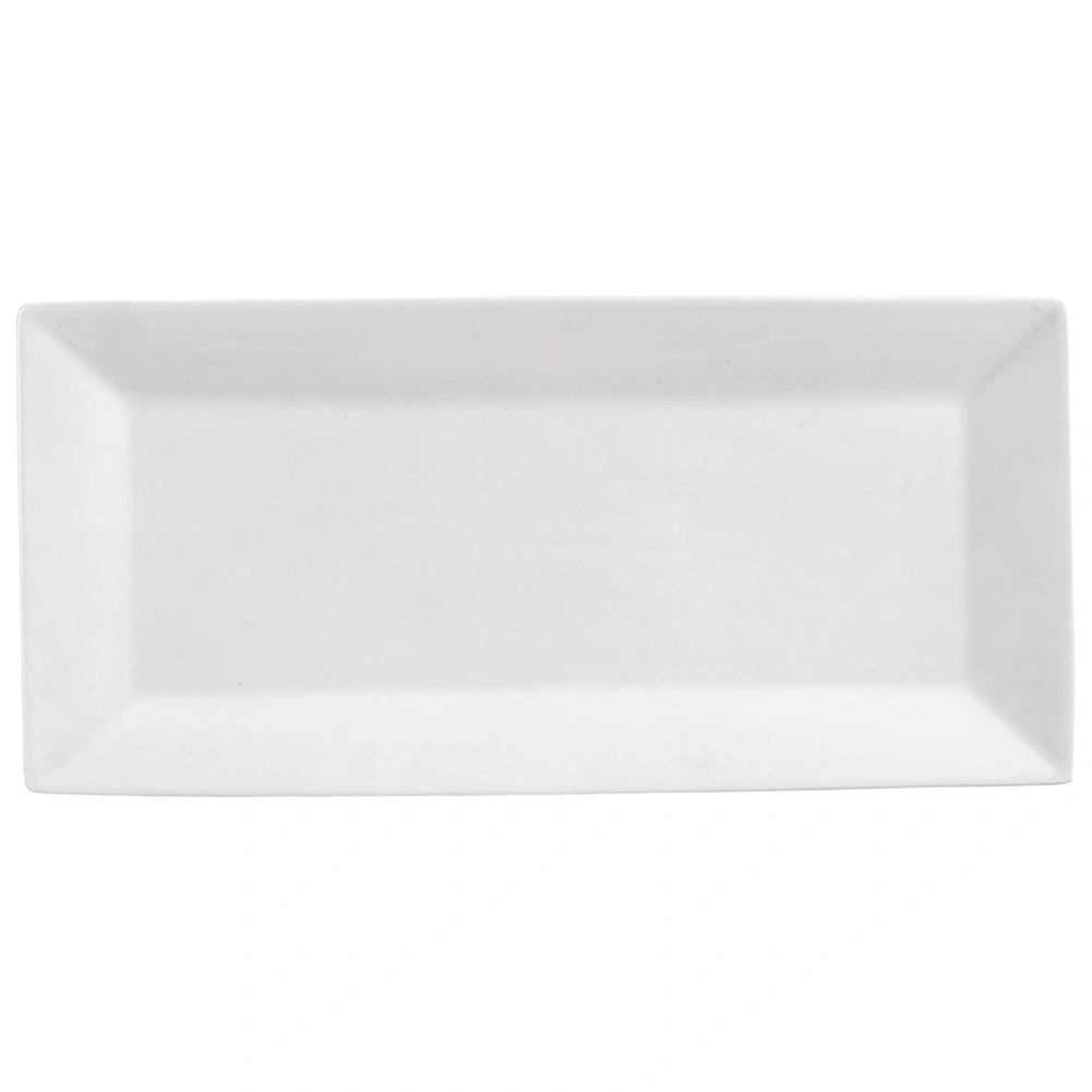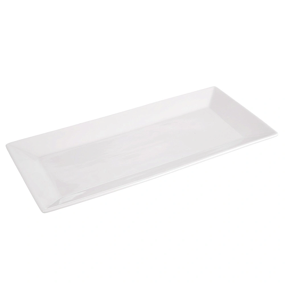Elegantný porcelánový servírovací tanier v čisto bielom prevedení na štýlové podávanie predjedál, syrov, sushi aj dezertov. Obdĺžnikový tvar 35 × 17 × 2 cm s ľahko zvýšenými okrajmi zabezpečuje stabilitu a estetickú prezentáciu jedál. Vhodný do umývačky riadu aj mikrovlnnej rúry, ideálny na každodenné používanie aj slávnostné servírovanie.