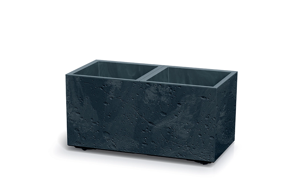 Štýlový kvetináč s betónovým efektom v antracitovej farbe ponúka dve oddelené časti vďaka vnútornej prepážke pre kreatívnu výsadbu, integrované vložky na jednoduché presádzanie a kolieska pre pohodlné presúvanie. Je vyrobený z UV odolného plastu, hodí sa do interiéru aj exteriéru a vďaka stohovateľnému prevedeniu ľahko vytvoríte viacpodlažné dekorácie.