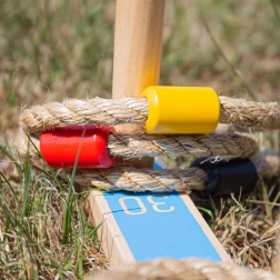 Táto klasická sada prináša jednoduché pravidlá a veľa radosti. Pevné drevené diely a robustné lanové krúžky zaisťujú dlhú životnosť, zatiaľ čo farebné značenie uľahčuje bodovanie a učenie čísel. Vďaka kompaktným rozmerom ju ľahko vezmete na záhradu, do parku aj na dovolenku.
