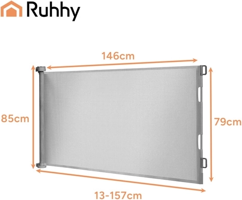 Praktická roletová bránka RUHHY ponúka plynulé roztiahnutie až do 157 cm, takže ju ľahko prispôsobíte úzkym aj širokým otvorom. Bezprahové riešenie eliminuje riziko zakopnutia a po stiahnutí zaberá minimum miesta. Vďaka kombinácii PVC rolety, hliníkových rúrok a pevných plastov je bránka stabilná a odolná na každodenné používanie.