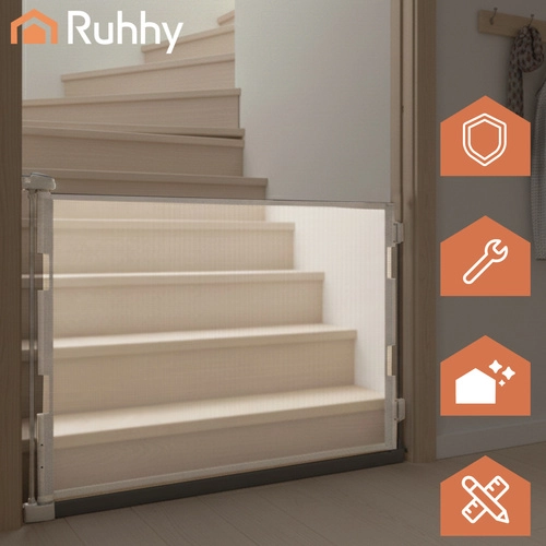 Zatahovacia bránka RUHHY je diskrétne a účinné zabezpečenie schodov, dverí a priechodov v domácnosti. Konštrukcia bez prahu zvyšuje bezpečnosť a pohodlie pri prechode, zatiaľ čo rolovacia roleta šetrí miesto a elegantne splynie s interiérom. Vďaka odolným materiálom a univerzálnej montáži je ideálna pre deti aj domácich miláčikov.