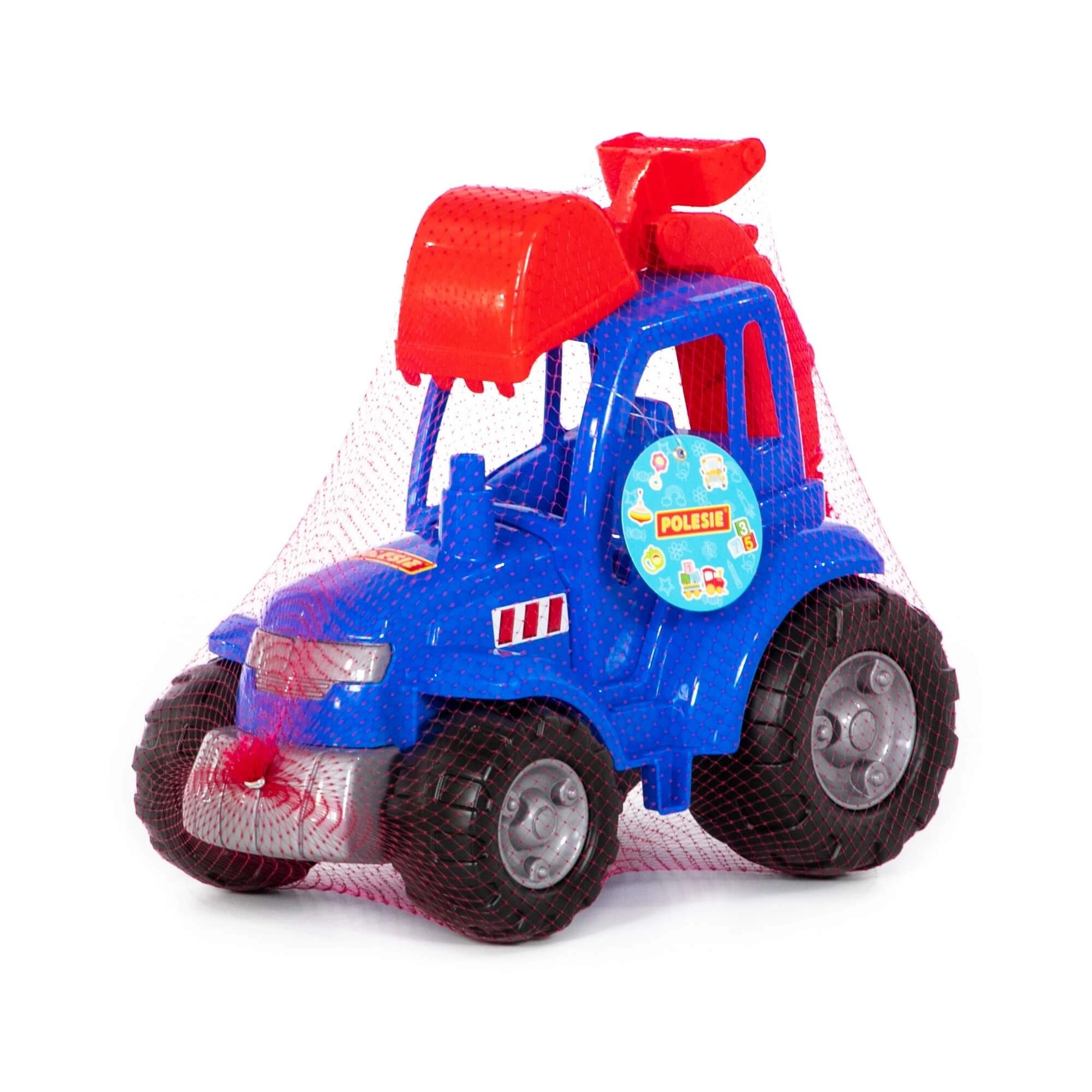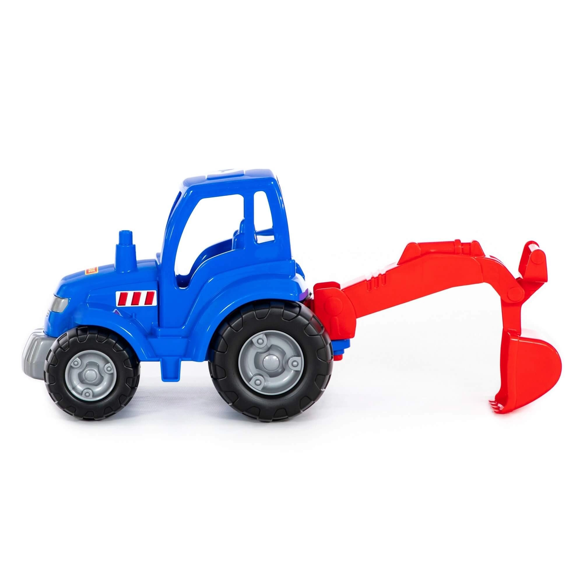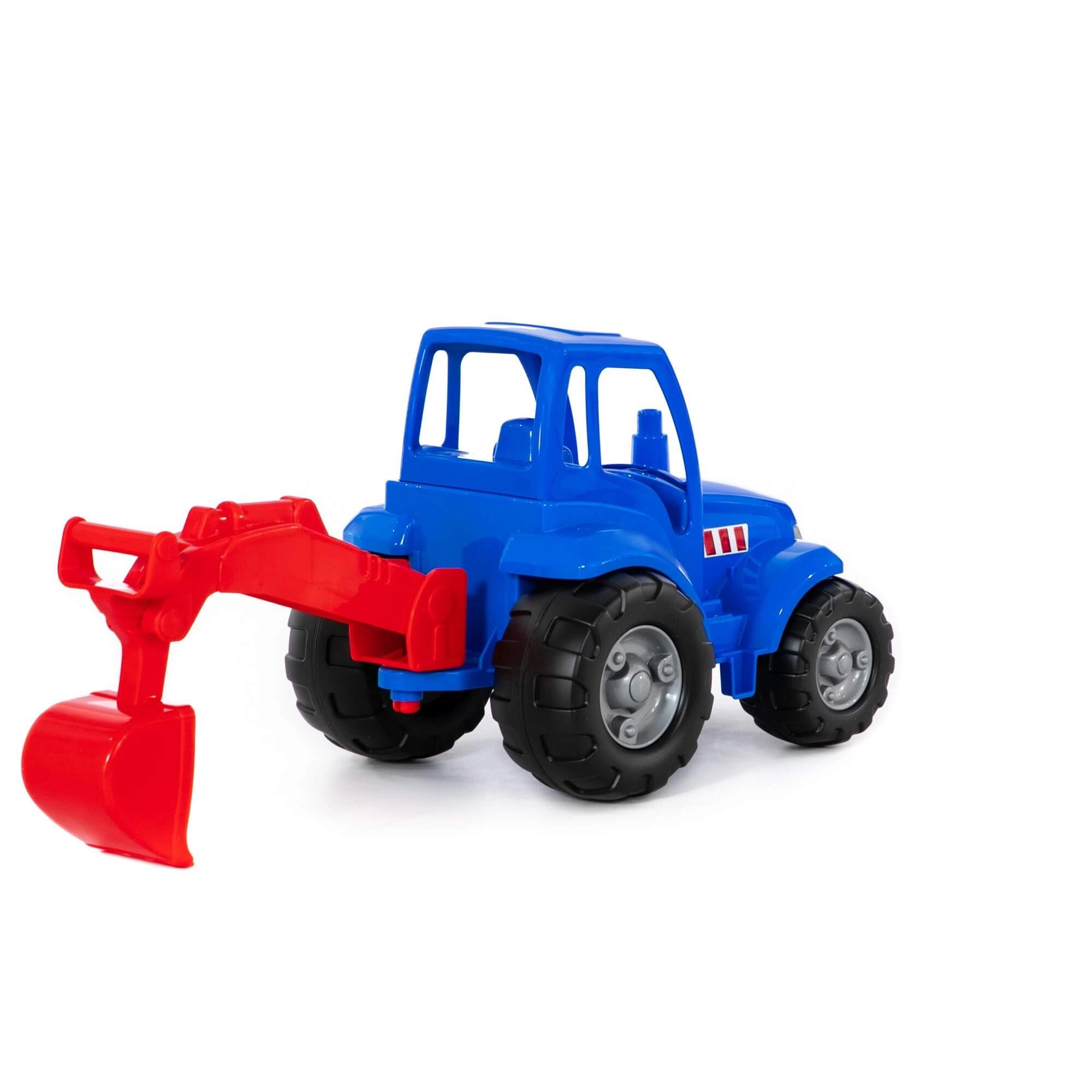 Traktor je vyrobený z pevného, odolného plastu, ktorý zvládne hranie na pieskovisku aj doma a ľahko sa čistí.