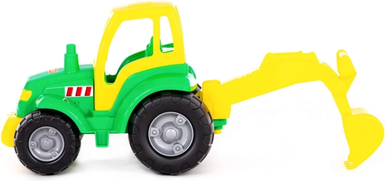 Hra s pracovným strojom podporuje rozvoj motorických zručností, očnej‑ručnej koordinácie a priestorovej predstavivosti. Traktor je vyrobený z odolného plastu s hladkými hranami a je vhodný na hranie vo vnútri aj vonku.