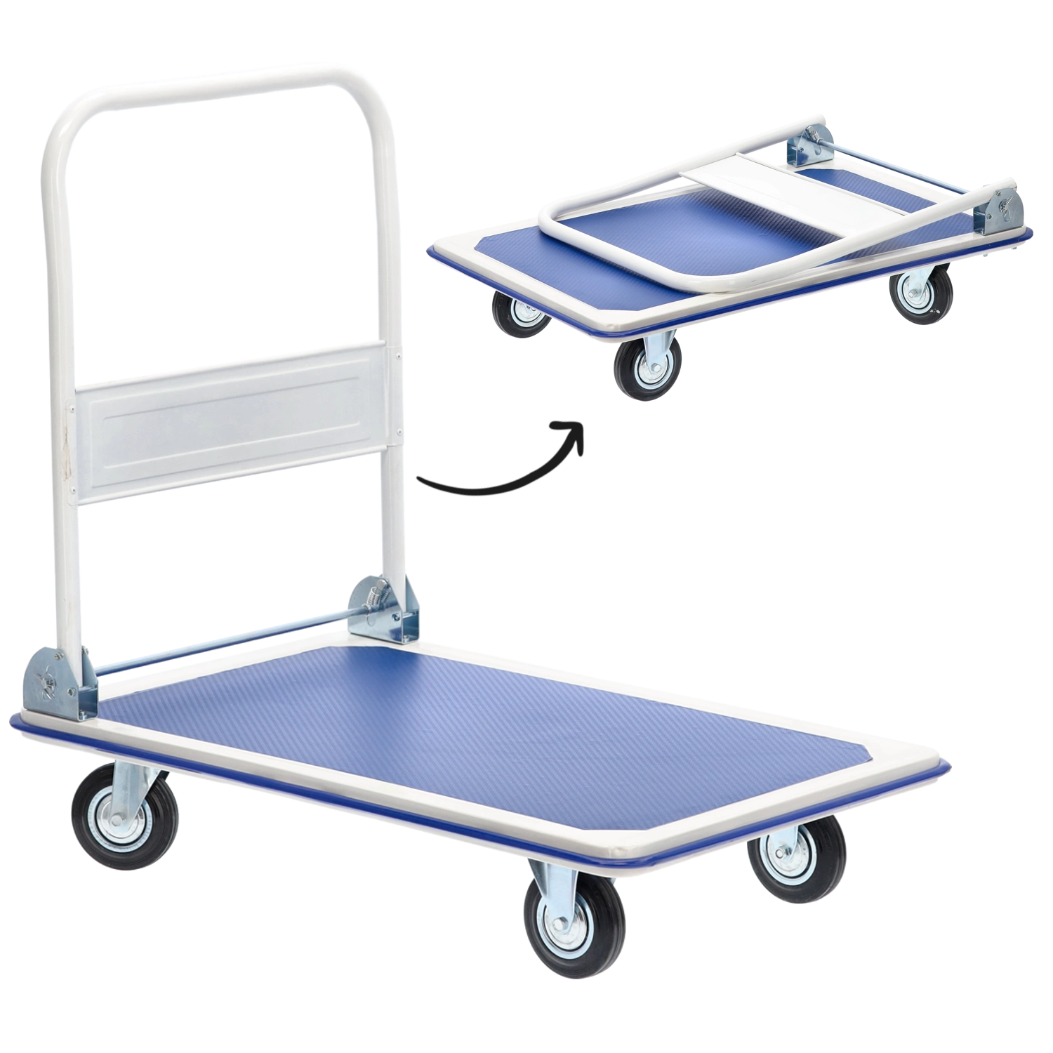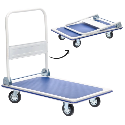 Praktický plošinový vozík s robustnou konštrukciou a nosnosťou až 300 kg uľahčí prepravu balíkov, debien aj náradia v dielni, kancelárii či sklade. Kompaktné rozmery, skladacia rukoväť a otočné kolieska zaisťujú jednoduché manévrovanie a úsporné skladovanie. Protišmyková textúrovaná plošina drží náklad bezpečne na mieste.
