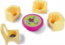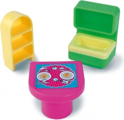 Súčasťou sady je bohaté príslušenstvo a arch nálepiek na doladenie interiéru. Deti si môžu domček ľahko upravovať podľa nálady.