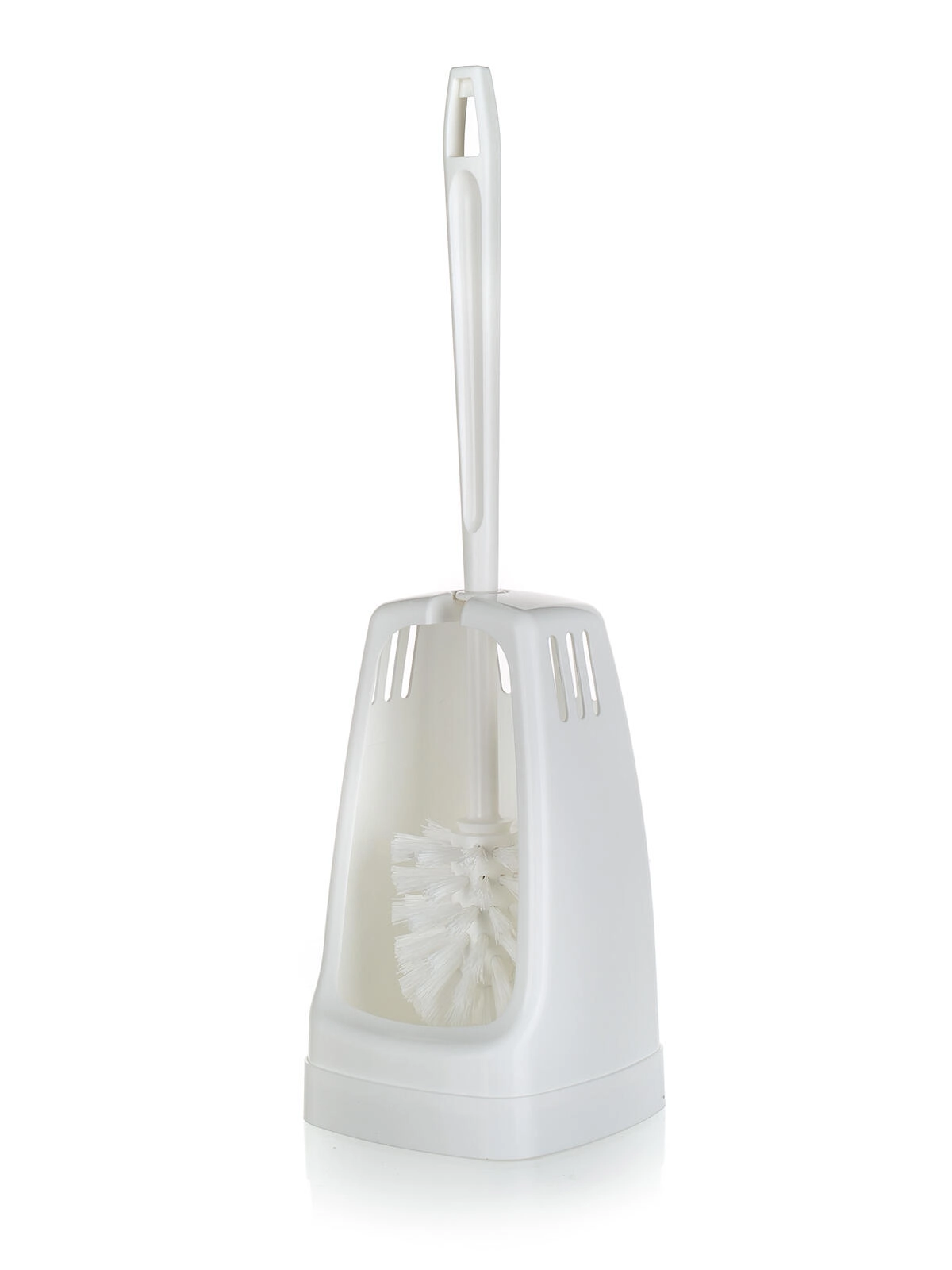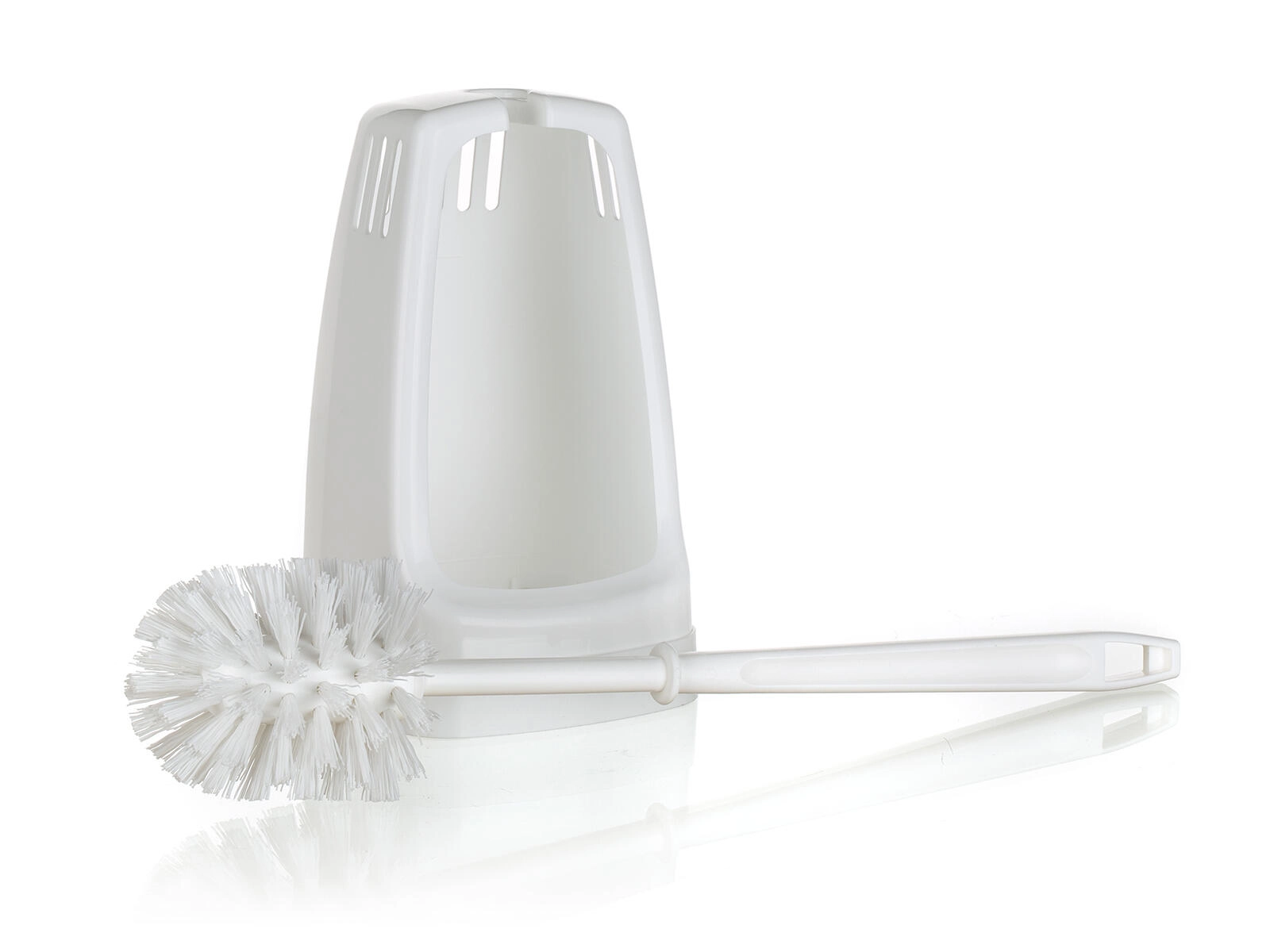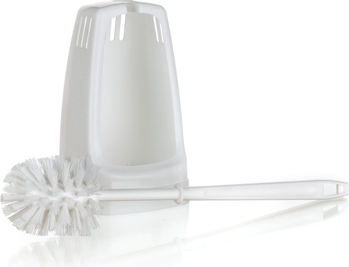 Táto biela WC súprava kombinuje jednoduchý dizajn a funkčnosť. Štvorcový plastový držiak je stabilný a nenápadný, kefka so syntetickými vláknami účinne odstraňuje nečistoty a uľahčuje pravidelnú údržbu toalety.