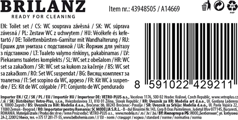 Vďaka zarážke v polovici rukoväte zostáva kefka bezpečne usadená v držiaku, čo zvyšuje hygienu aj pohodlie pri používaní. Kompaktné rozmery 39 × 15 cm sa hodia do malých aj väčších kúpeľní.