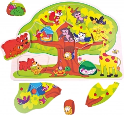 Vkladačka má tvar stromu a obsahuje 11 samostatných dielikov so zvieratkami a pevnú základňu. Vďaka odolnej preglejke je ideálna na každodenné používanie doma aj v škôlke.
