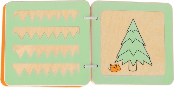 Drevená zmyslová knižka s lišiakom Lexom ponúka deťom prvé stretnutie s jednoduchými tvarmi, výrezmi a ilustráciami, ktoré podnecujú zvedavosť aj predstavivosť. Robustné spracovanie, hladké hrany a kovové krúžky zabezpečujú bezpečné a pohodlné listovanie aj pre tie najmenšie rúčky.
