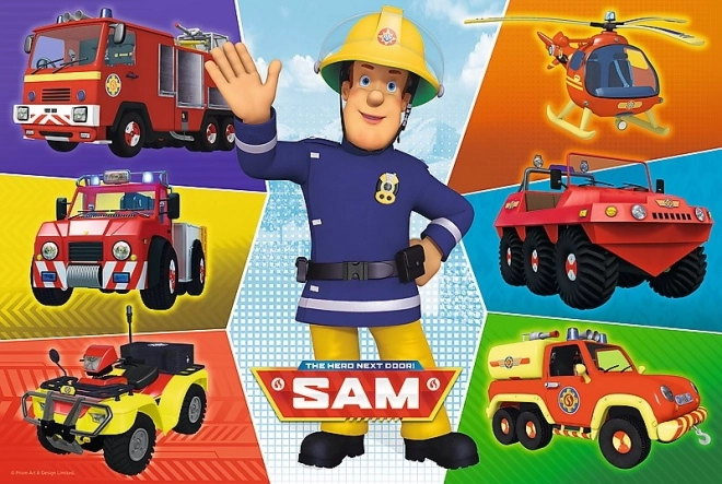 - Motív Požiarnik Sam – obľúbené postavy a vozidlá pre ešte väčšiu motiváciu k skladaniu