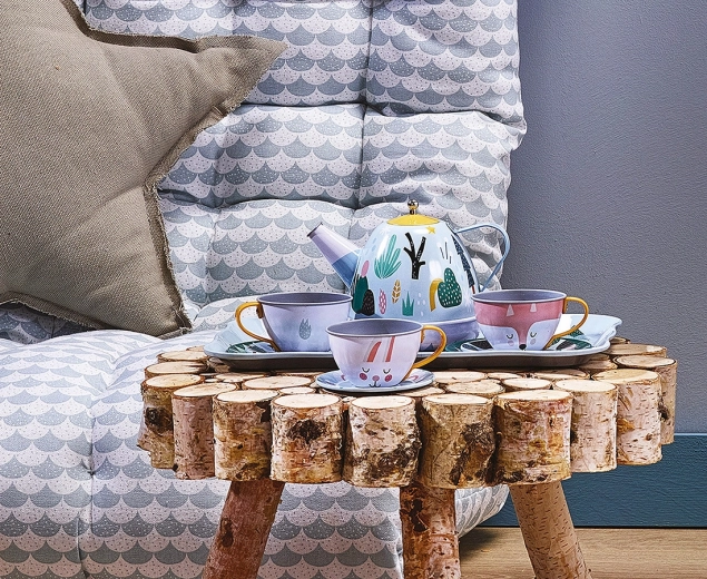 Veľký servírovací podnos, hrnčeky s podšálkami a dezertné tanieriky umožnia deťom hostiť rodinu aj kamarátov ako profesionáli.