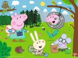Puzzle Lesná výprava Peppa Pig sú inšpirované populárnym animovaným seriálom pre deti Peppa Pig. Táto veľká skladačka z pevného kartónu je vytvorená špeciálne pre najmenšie deti. Živé farby a krásne vzory zvieratiek motivujú deti k hraniu.