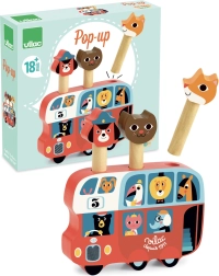 Vilac Drevená vystreľovacia hra Autobus so zvieratkami je krásna hračka s ilustráciami od známej umelkyne Ingely P. Arrhenius. Tri rozkošné postavičky – líška, psík a mačička – vystreľujú z autobusu, čo deti zaručene pobaví.