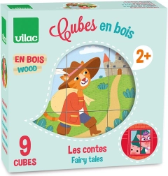 Drevené kocky Vilac Príbehy prinášajú deťom radosť z objavovania a skladania. Z deviatich pevných kociek zložíte šesť rôznych rozprávkových motívov, ktoré rozvíjajú predstavivosť a učia deti sústredeniu. Vďaka pevnému drevu a kvalitnej potlači je hračka odolná a vhodná na každodenné hranie.
