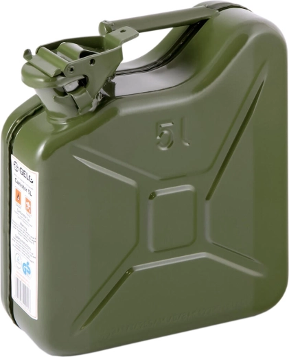 Praktický a odolný kovový kanister na palivo s objemom 5 l na bezpečné skladovanie a prepravu benzínu, nafty aj oleja. Vyrobený z lakovaného plechu s pohodlným držadlom pre ľahkú manipuláciu – ideálny do dielne, servisu aj na záhradu.