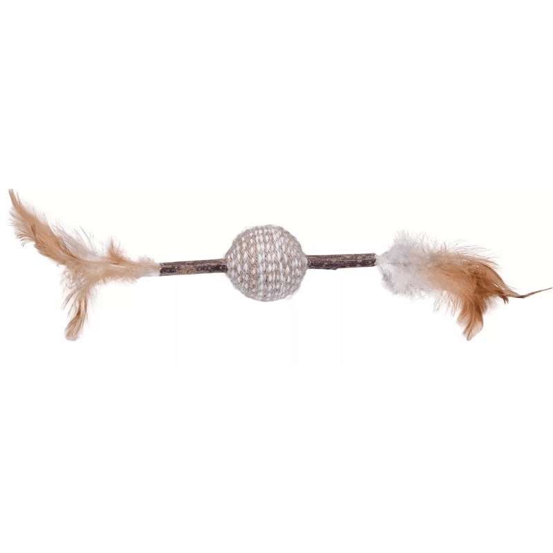 Vďaka sisalovému povrchu loptičky hračka podporuje škrabanie a mechanické čistenie zubov, zatiaľ čo jemné perie prebúdza lovecké reflexy a udržiava pozornosť mačky. Prút umožňuje interaktívnu hru s majiteľom, posilňuje vzájomné puto a predchádza nude.