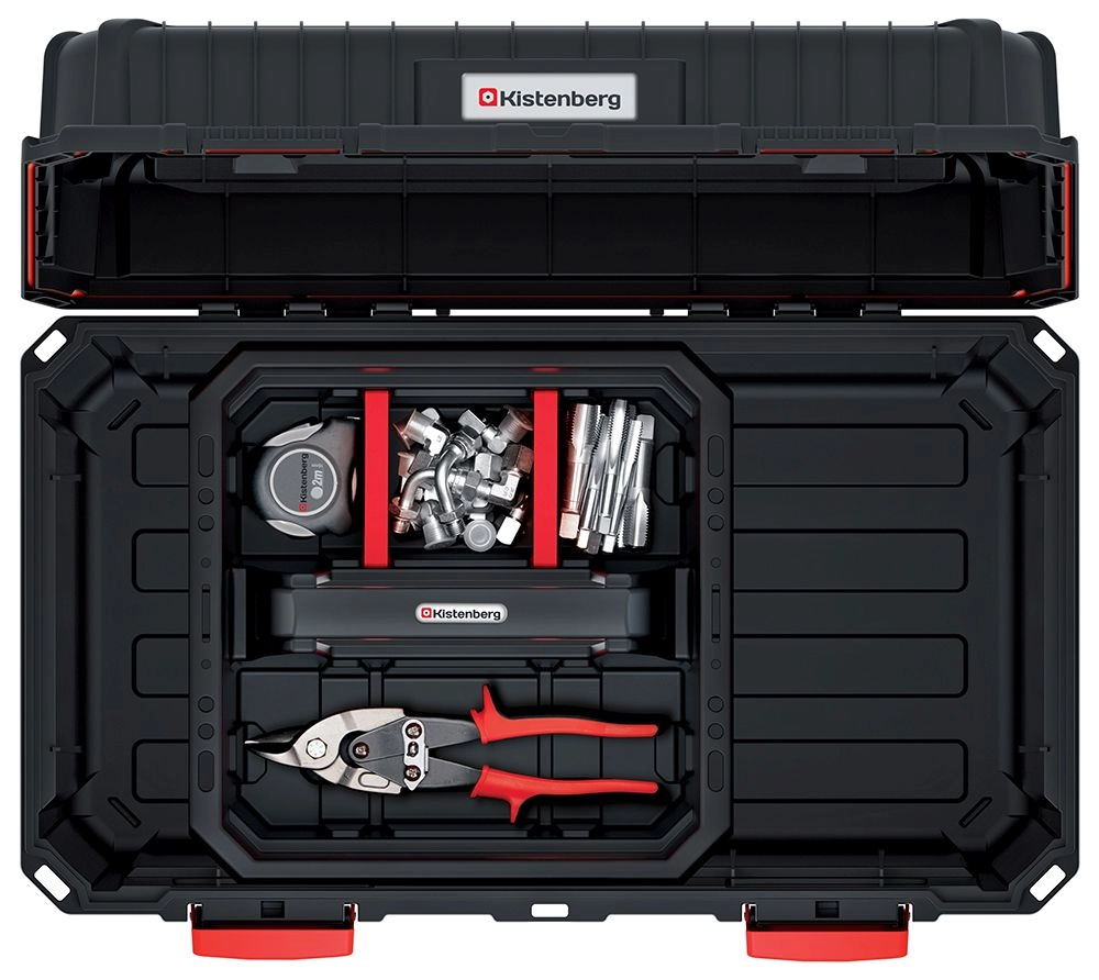 Kufor disponuje plastovou rukoväťou s pohodlným úchopom a plastovými zámkami, ktoré zabezpečujú rýchle a isté uzavretie. Čierne prevedenie pôsobí profesionálne a ľahko sa udržiava. Ideálna voľba pre remeselníkov, servisných technikov aj domáce dielne.