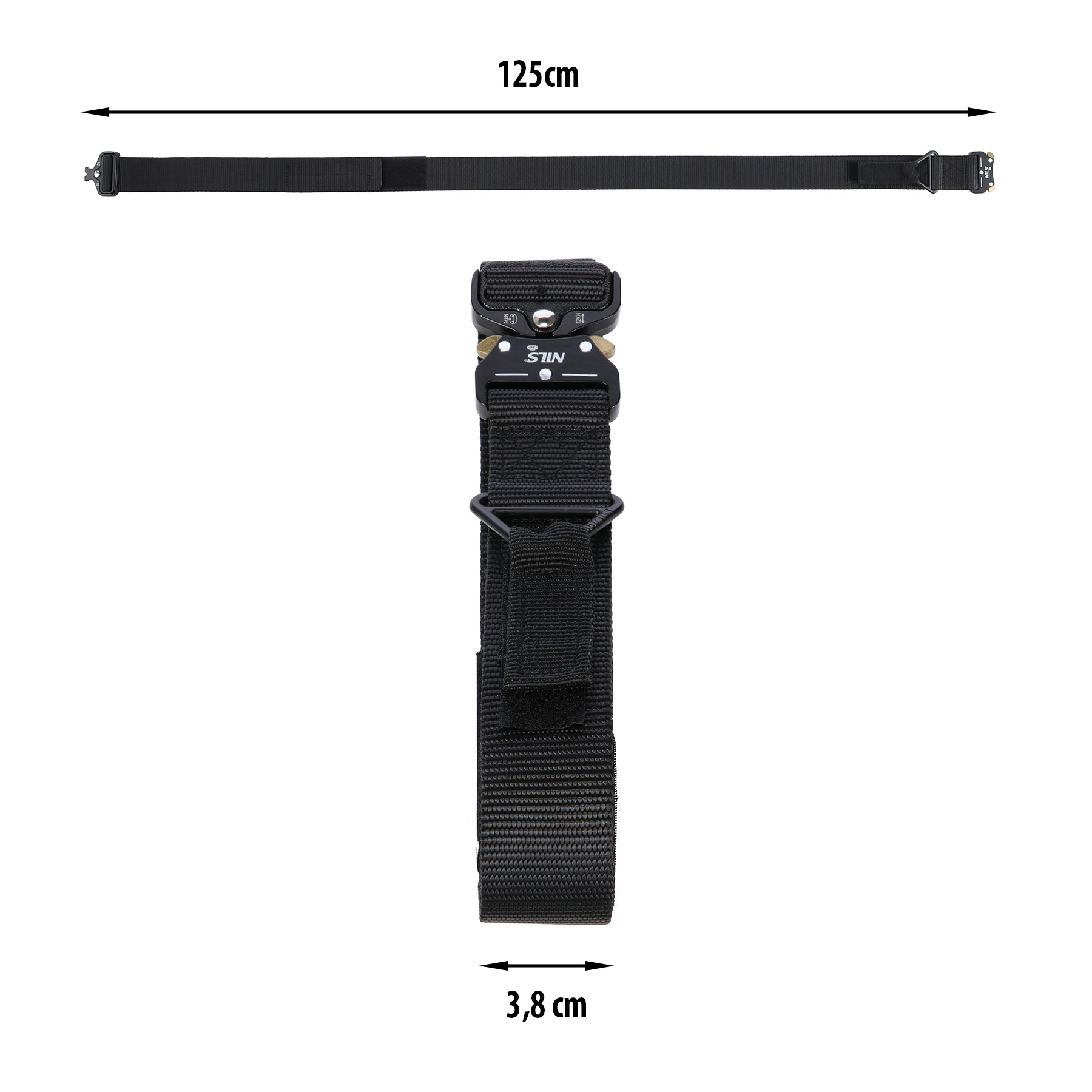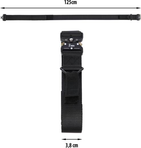 Univerzálny taktický opasok NILS Camp v čiernej farbe ponúka rýchloupínaciu kovovú pracku typu Cobra, odolný nylonový popruh a pevné šitie pre maximálnu spoľahlivosť. Vďaka nastaviteľnej dĺžke 125 cm a nízkej hmotnosti je ideálny na každodenné nosenie, outdoorové aktivity aj služobné využitie. Prídavné uchytenie na výstroj zabezpečuje, že máte potrebné vybavenie vždy po ruke.