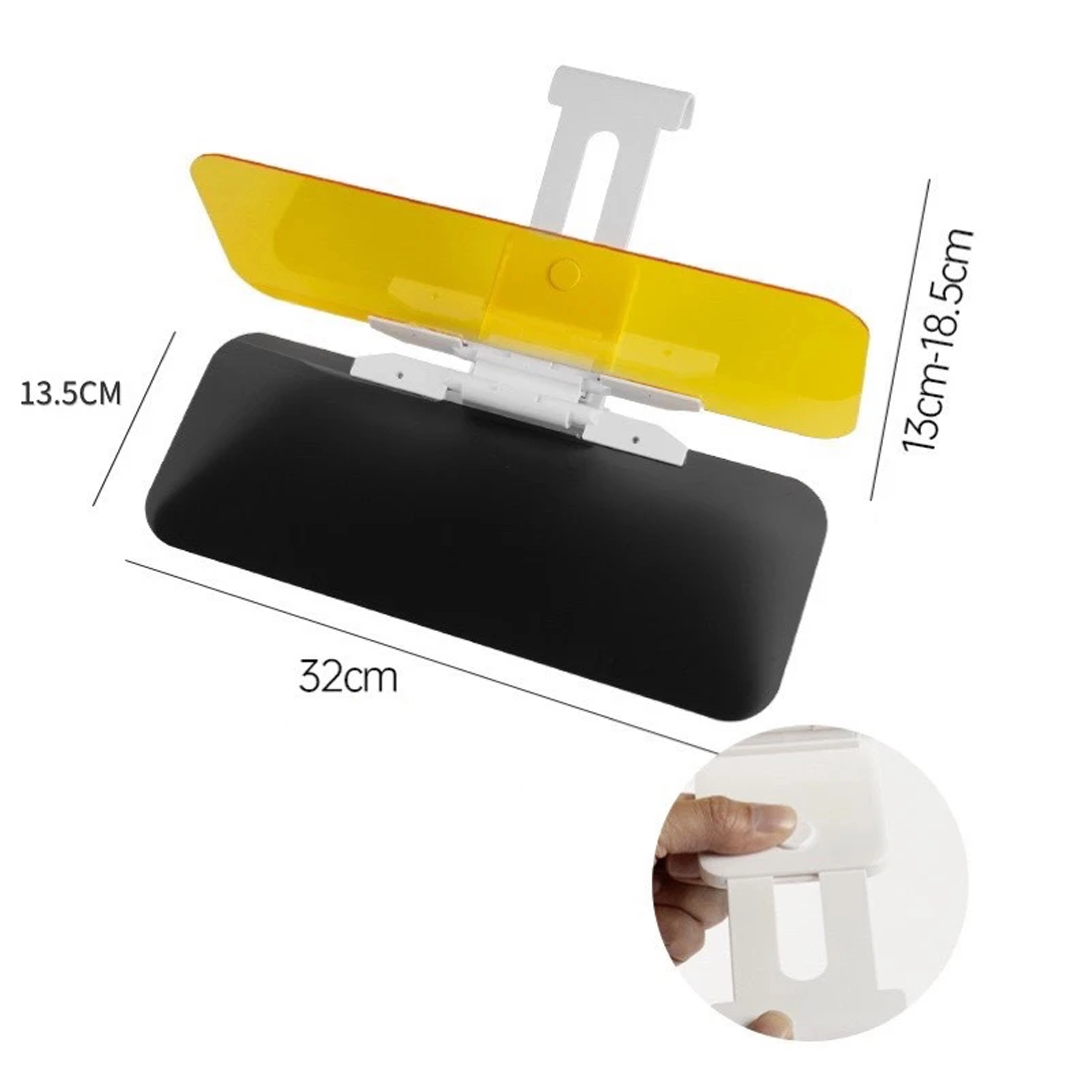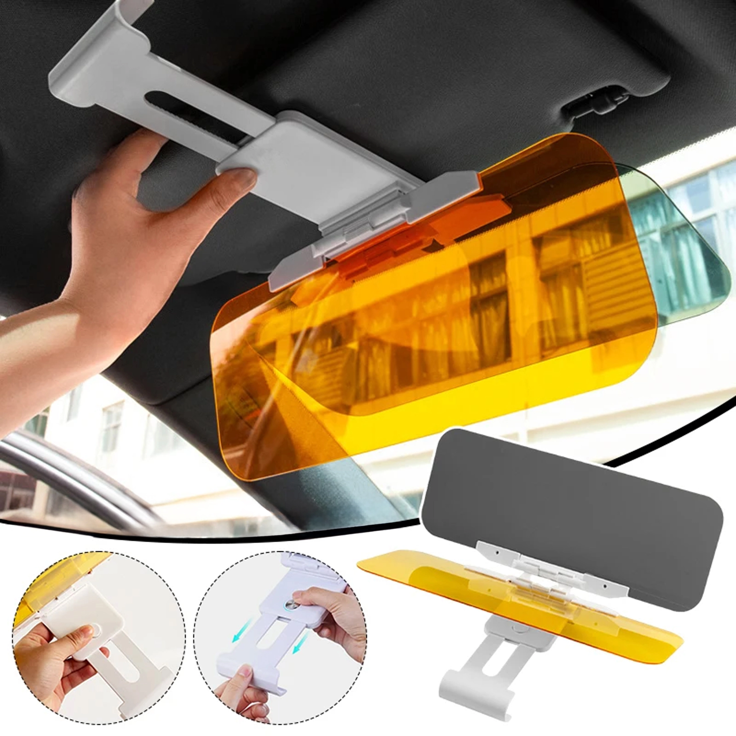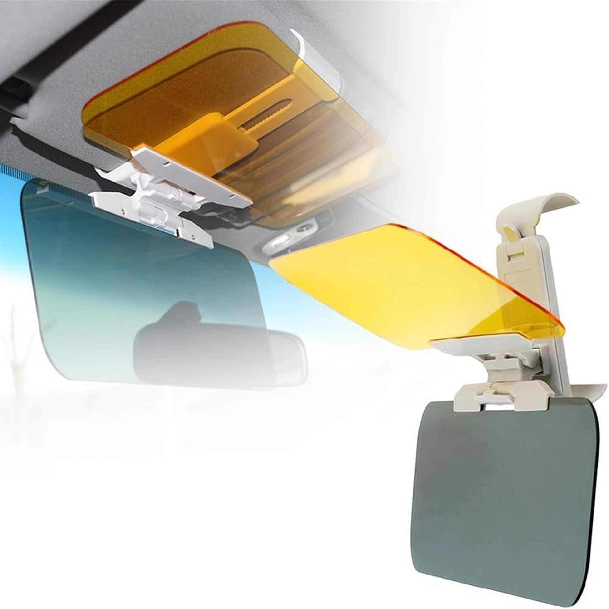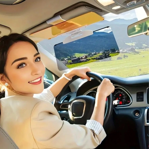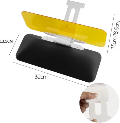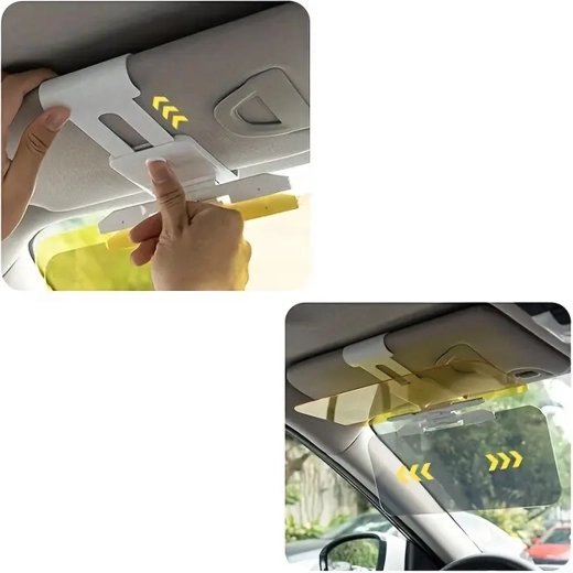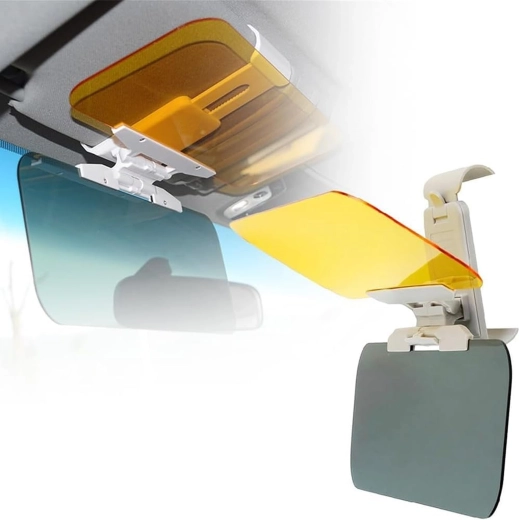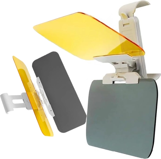 Praktická univerzálna clona proti oslneniu do auta s panelmi 2v1 na deň aj noc zvyšuje bezpečnosť a pohodlie za volantom. Sivý panel tlmí ostrý slnečný svit cez deň, žltý panel redukuje oslnenie svetlometmi v noci. Ľahké klipové uchytenie na existujúcu slnečnú clonu, rýchle sklopenie jedným pohybom a zlepšená viditeľnosť bez únavy očí pri jazde.