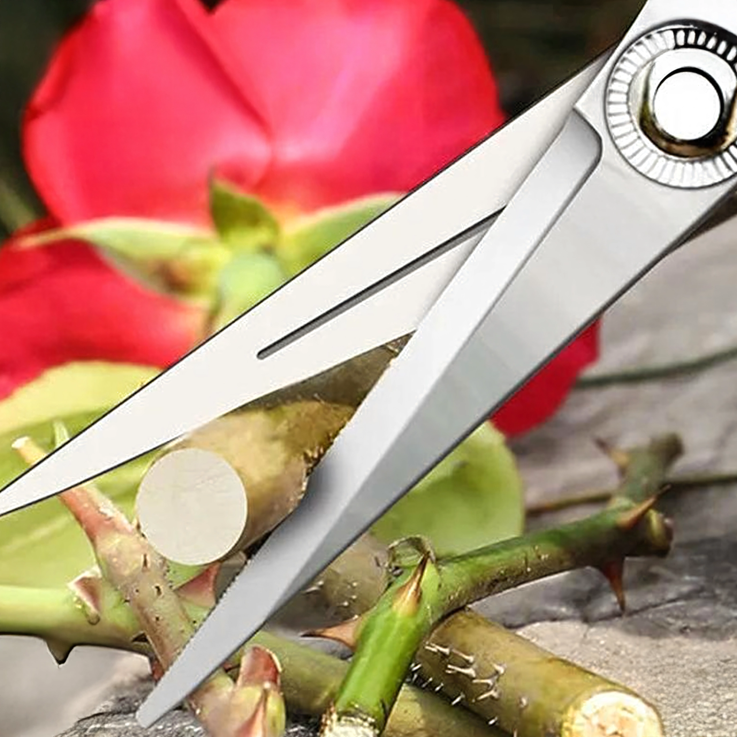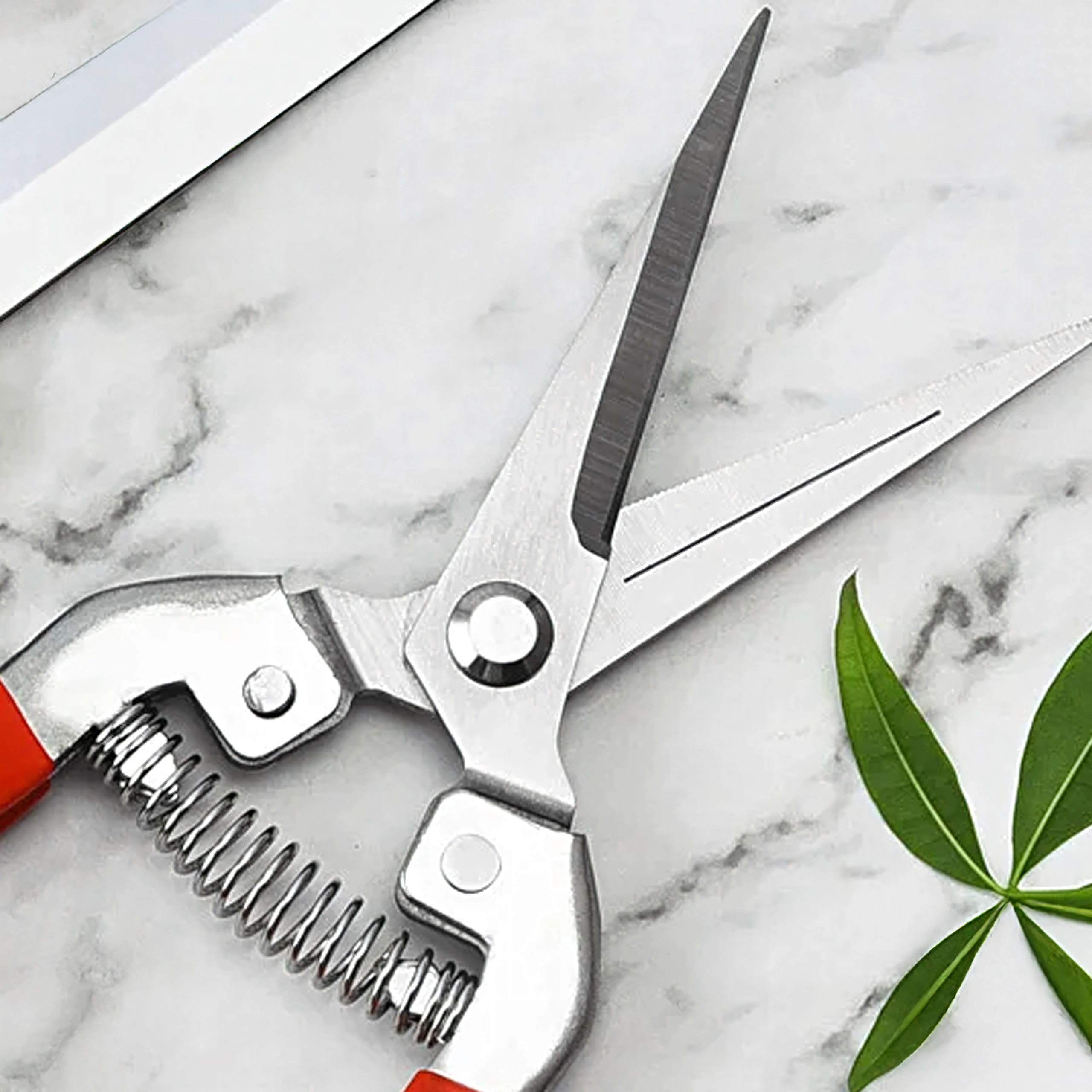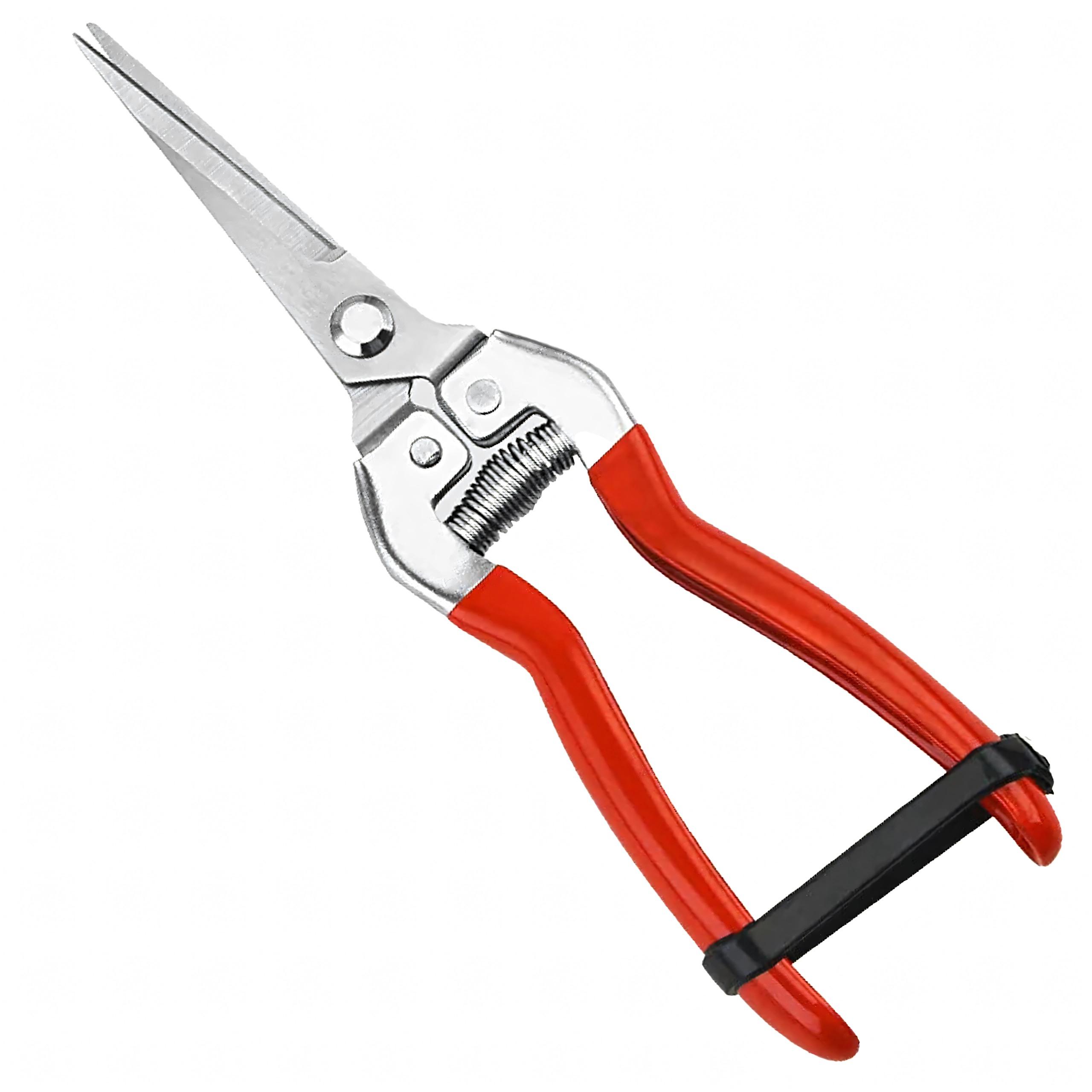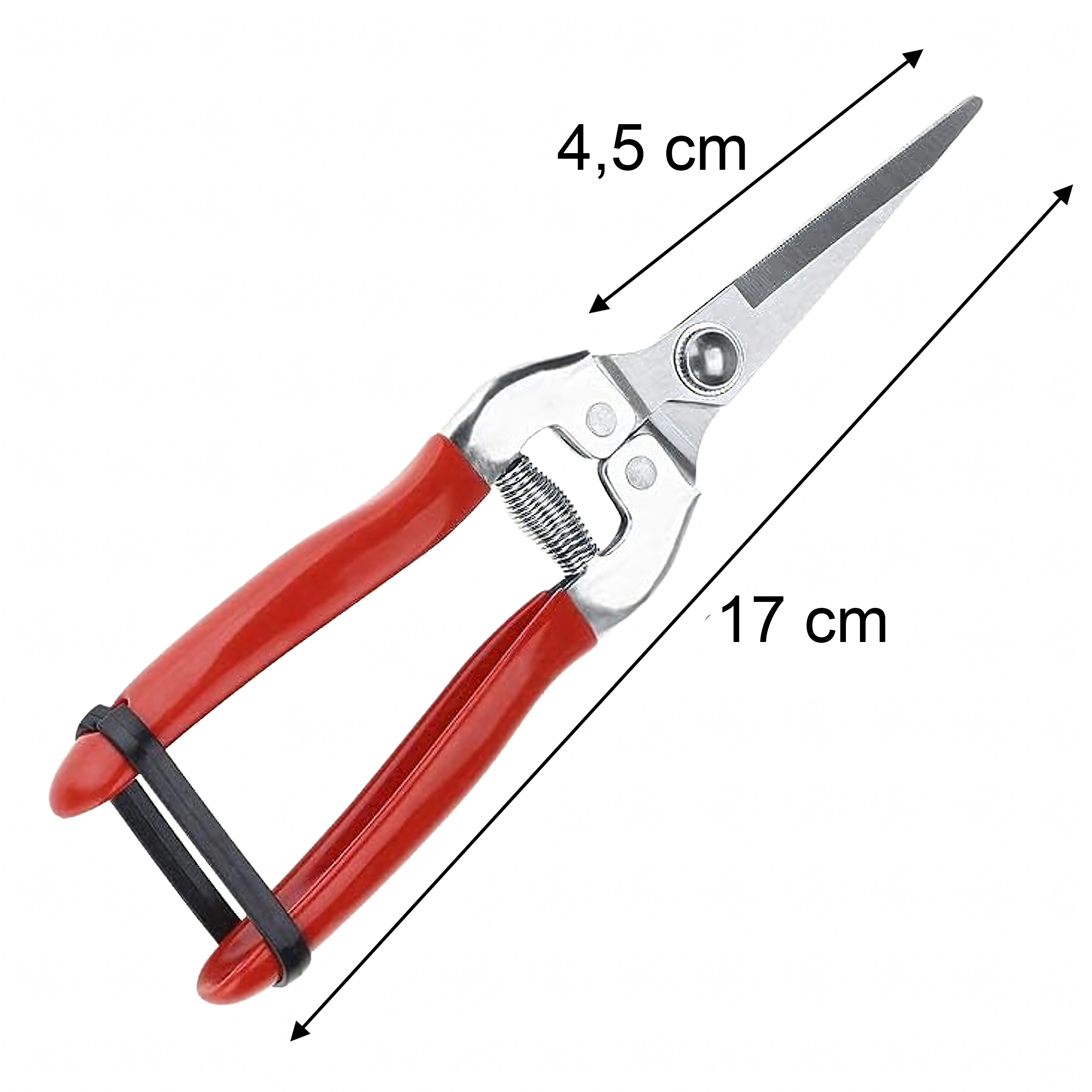 - Presný strih: úzke nerezové čepele pre čisté rezy stoniek a jemných vetvičiek.