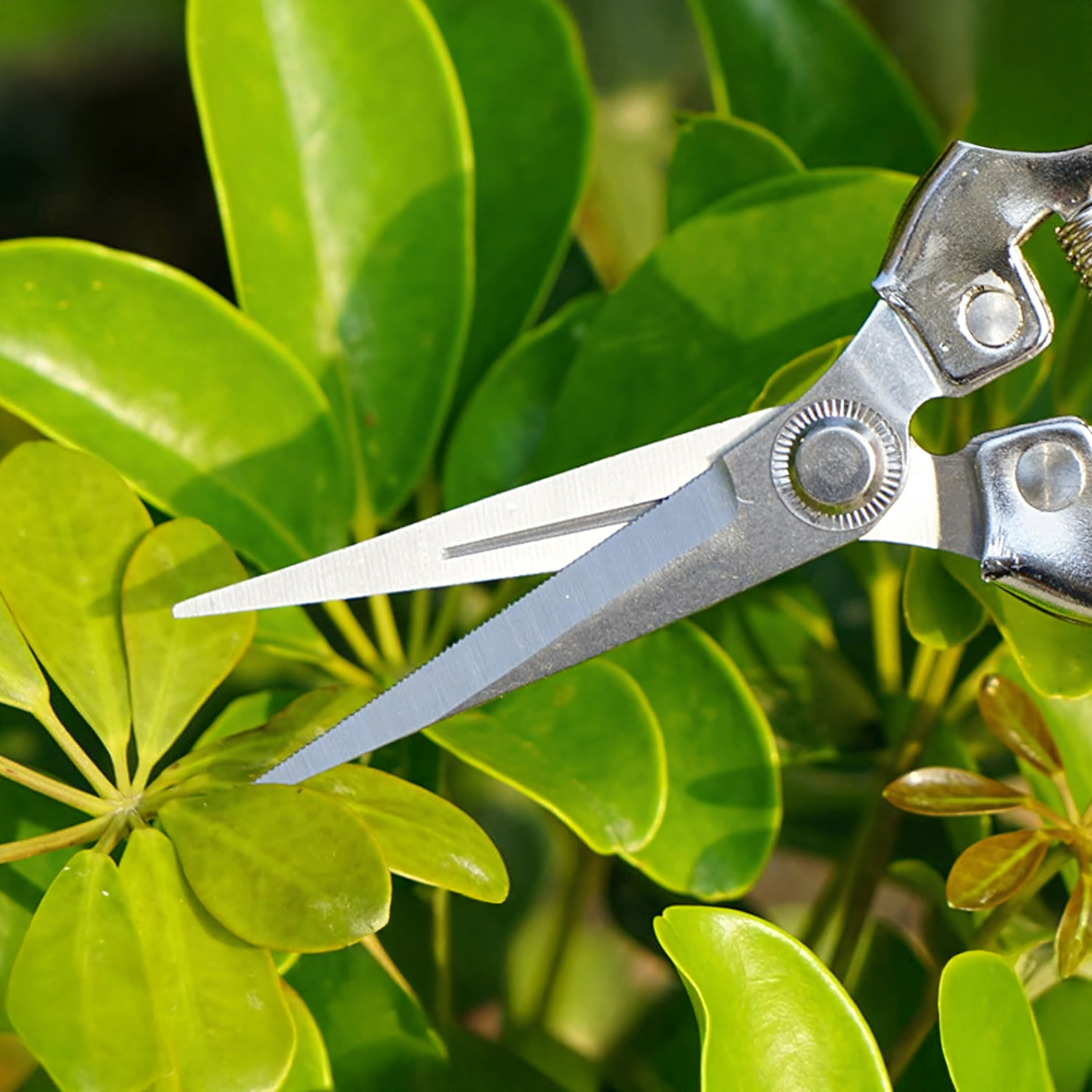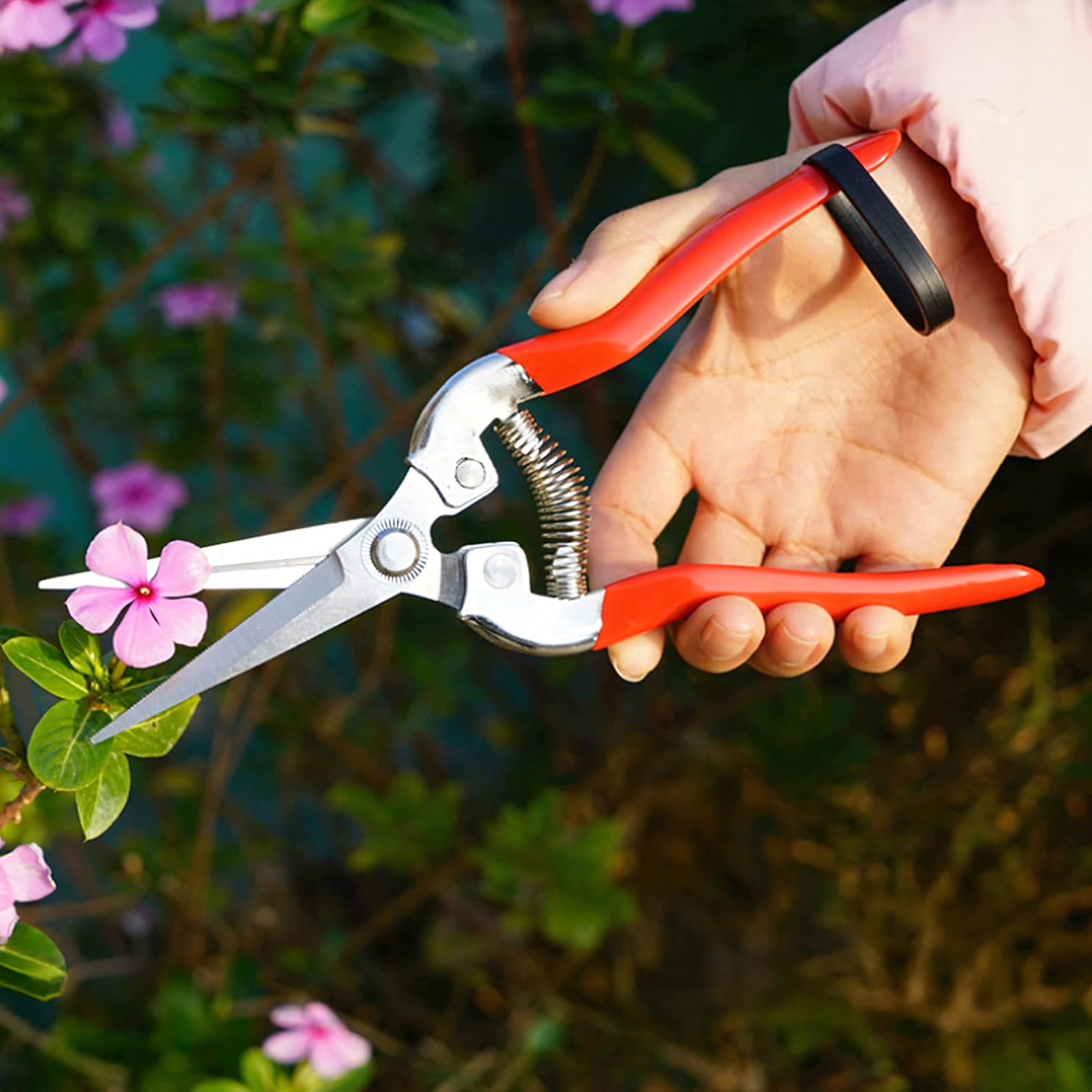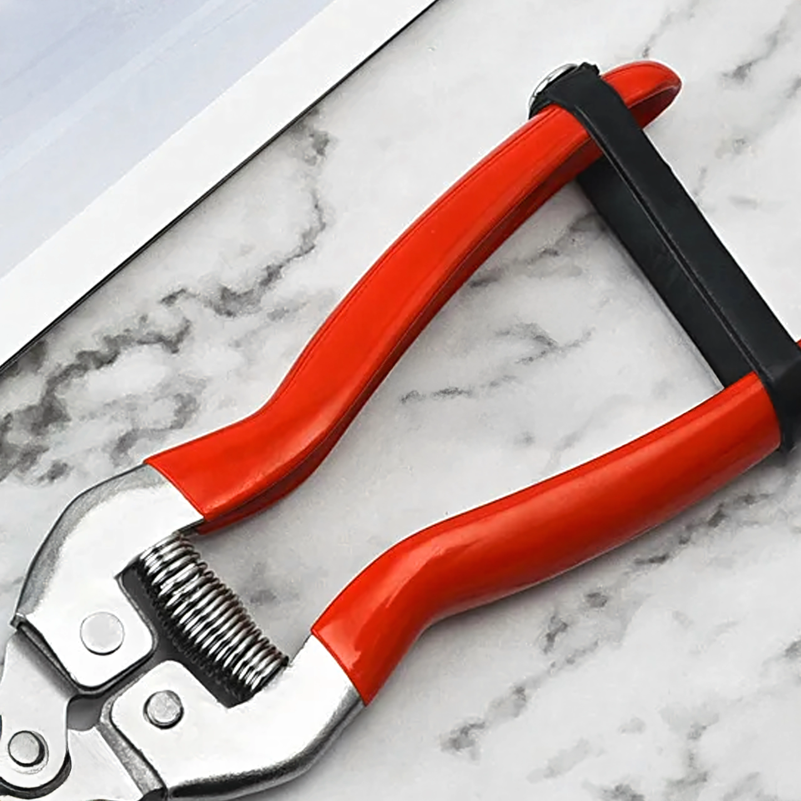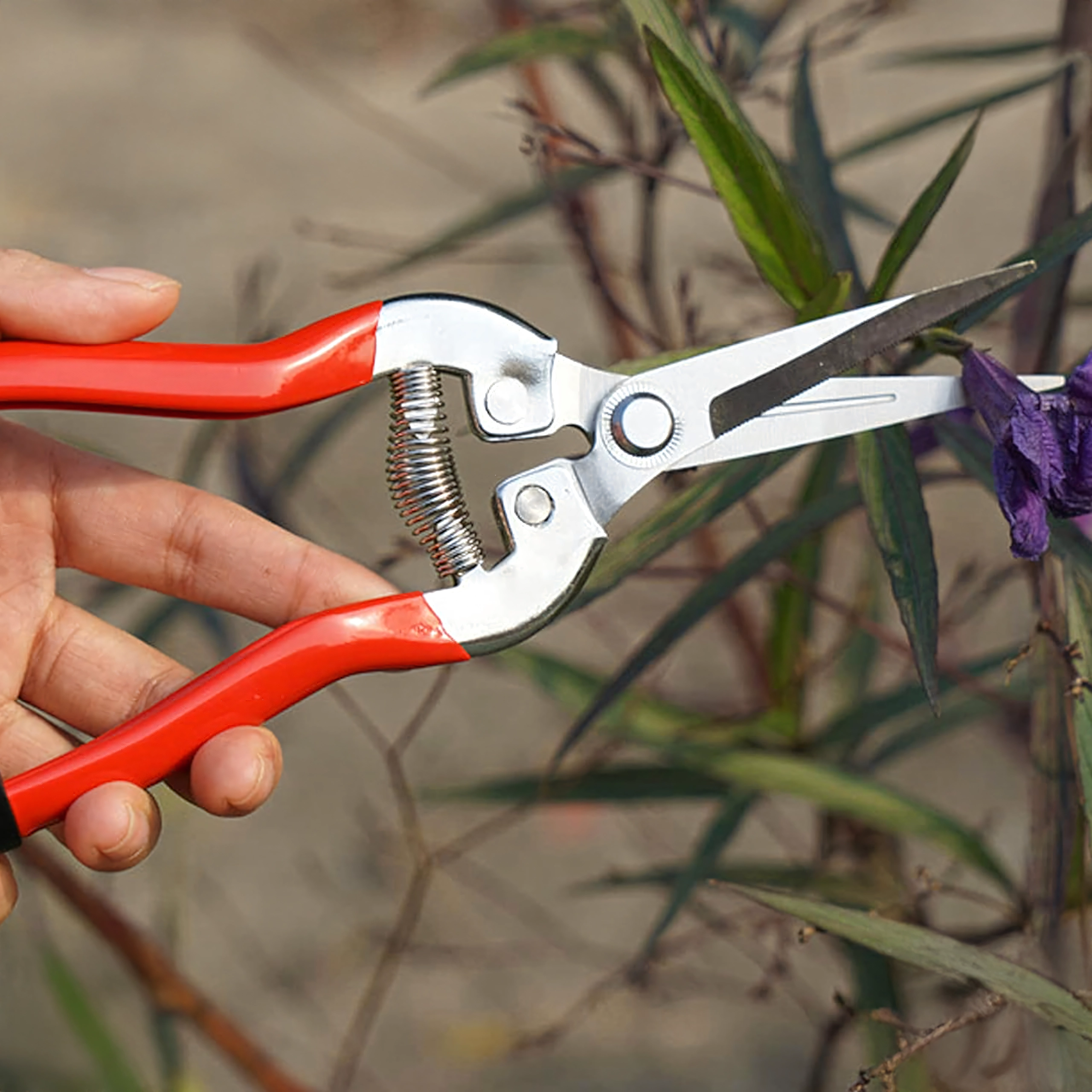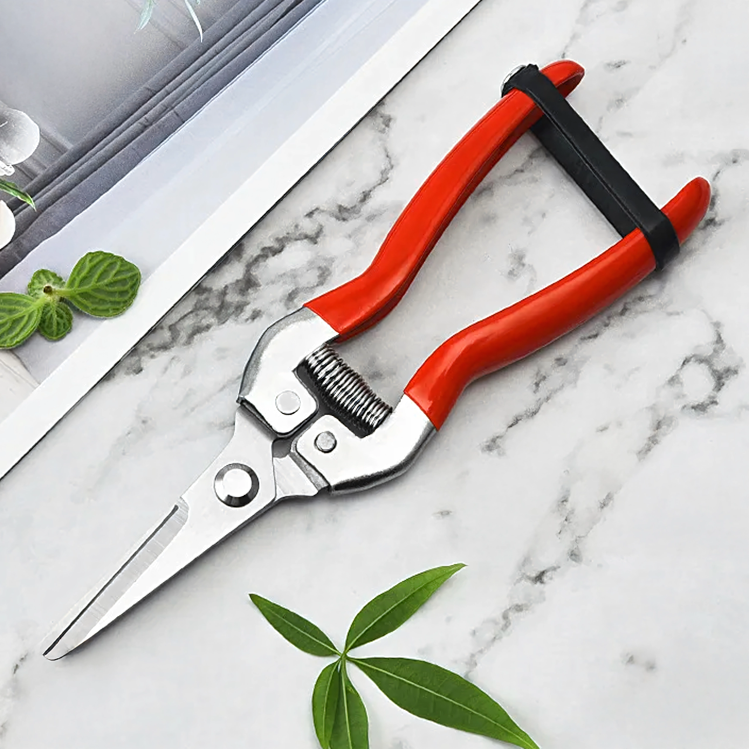 - Presný strih: úzke nerezové čepele pre čisté rezy stoniek a jemných vetvičiek.