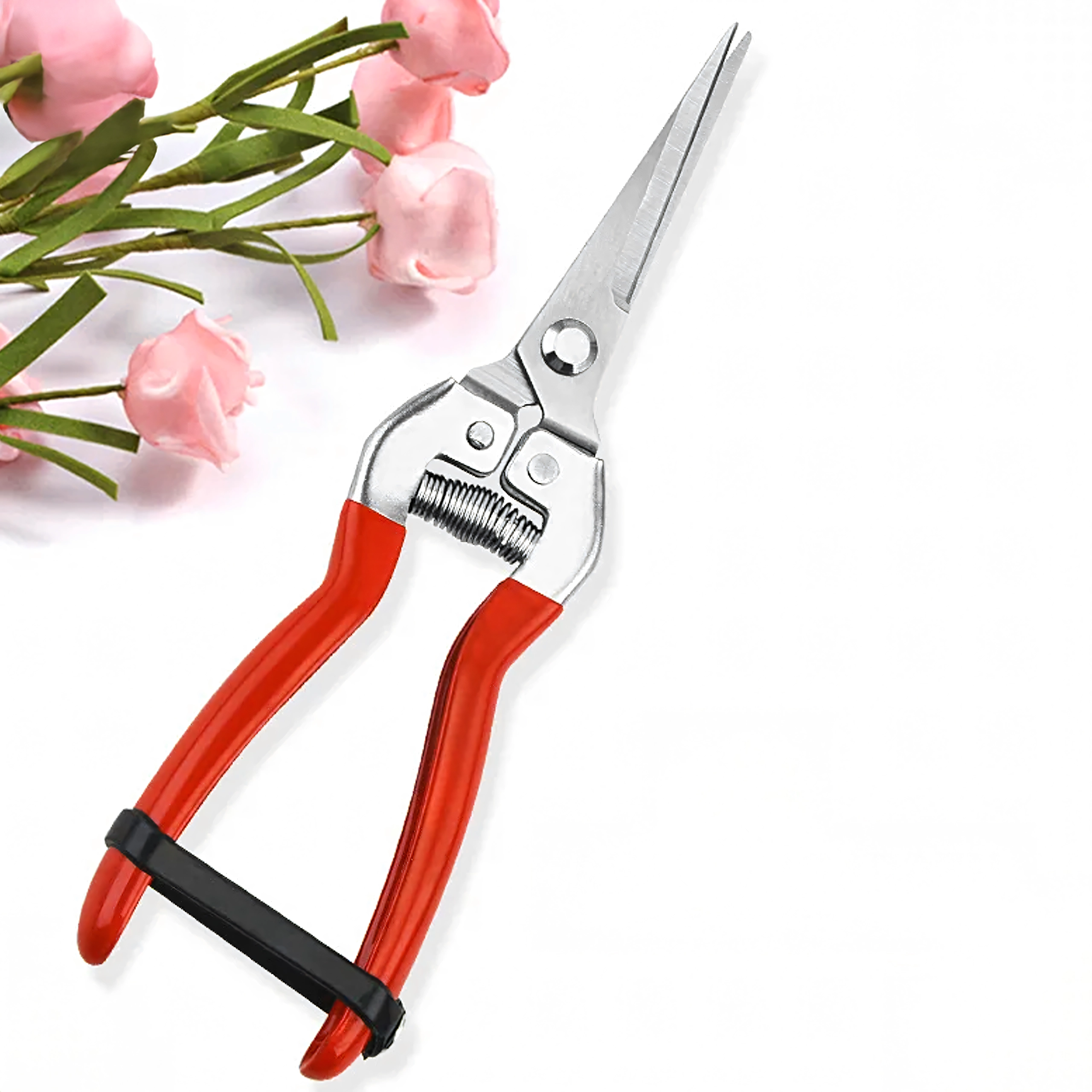 Tieto kompaktné záhradné nožnice sú ideálne na každodennú údržbu rastlín, tvarovanie kríkov a presné zastrihovanie kvetov. Dlhé, úzke čepele z nehrdzavejúcej ocele umožňujú čisté a presné rezy aj na ťažšie dostupných miestach, zatiaľ čo pružinové otváranie šetrí silu pri opakovaných strihoch.