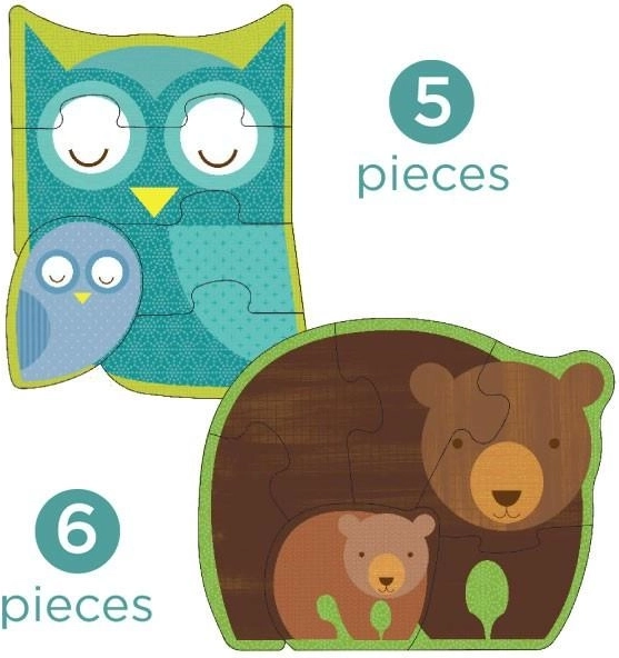 Predstavujeme prvé puzzle pre najmenších s motívmi lesných zvieratiek. Táto skladačka obsahuje 3, 4, 5 a 6 dielikov, ideálne pre malé ručičky a kreatívnu myseľ detí.