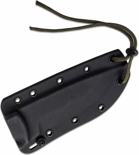 Kompozitná rukoväť z G10 v čierno‑zelenom prevedení má 3D frézovanie pre istý úchop aj v rukaviciach alebo za mokra. Praktický otvor pre šnúrku rozširuje možnosti istenia a prenášania. Súčasťou balenia je tvarované kydexové puzdro na bezpečné a rýchle tasenie.