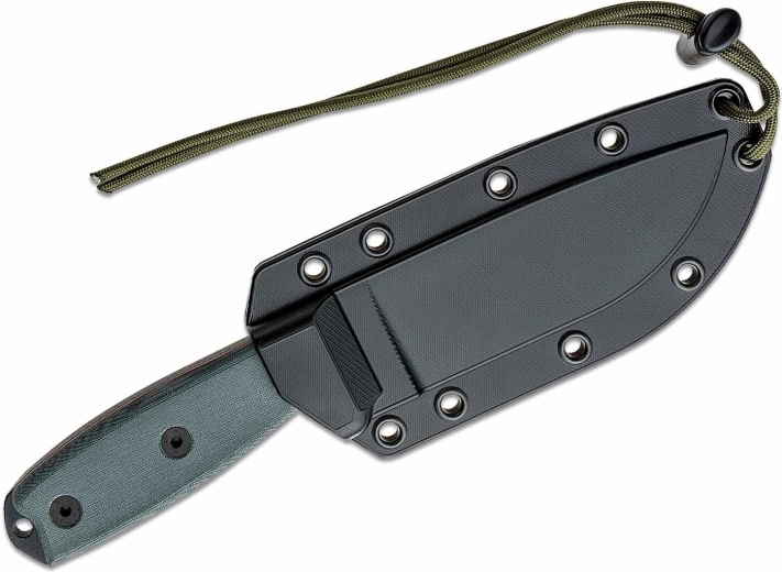 Rukoväť z materiálu Micarta v sivej farbe skvele sadne do ruky, poskytuje istý úchop aj v náročných podmienkach a na konci má otvor na prevlečenie šnúrky. Súčasťou balenia je čierne plastové puzdro s možnosťou pripnutia na výstroj, takže máte nôž vždy bezpečne a pohodlne po ruke.