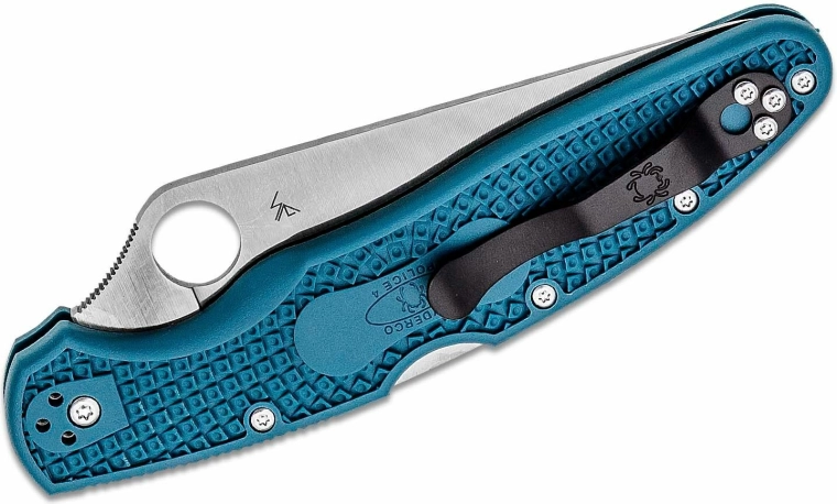 Čepeľ sa otvára typickým otvorom SPYDERCO pre rýchle a isté jednoručné otvorenie. Zámok Backlock zaručuje bezpečné zaistenie pri práci. Textúrovaná FRN rukoväť v modrej farbe je ľahká, odolná a skvele sedí v ruke, a to aj za mokra. Nôž je doplnený vreckovým klipom a otvorom na šnúrku pre flexibilné nosenie.