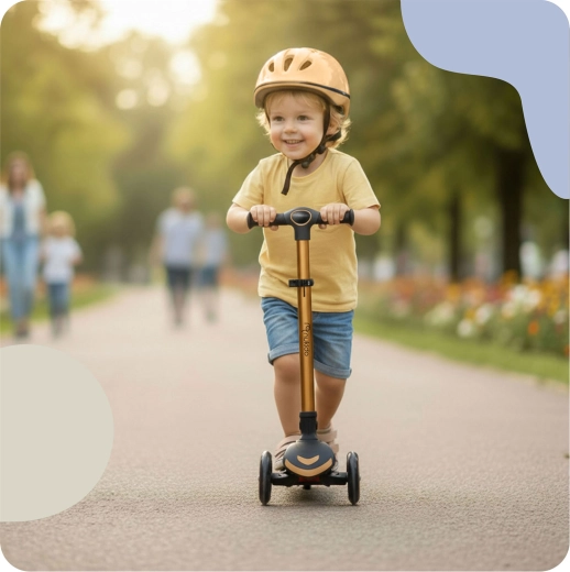 NUKIDO Flippo je ľahká a odolná detská trojkolka navrhnutá pre bezpečný začiatok jazdy. Dve veľké predné kolesá a menšie zadné koleso dodávajú stabilitu, systém riadenia náklonom rozvíja rovnováhu a koordináciu. Široká, protišmyková plošina a účinná zadná nožná brzda pomáhajú udržať kontrolu v každej situácii.