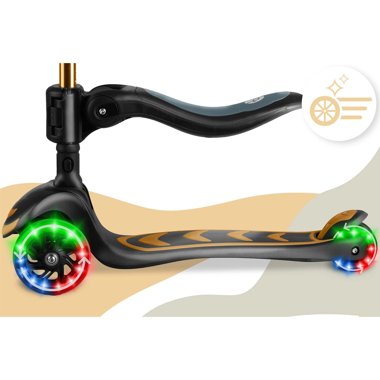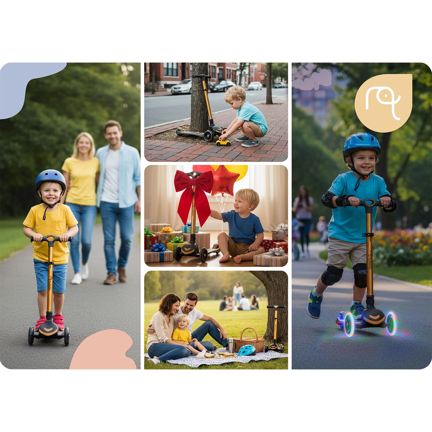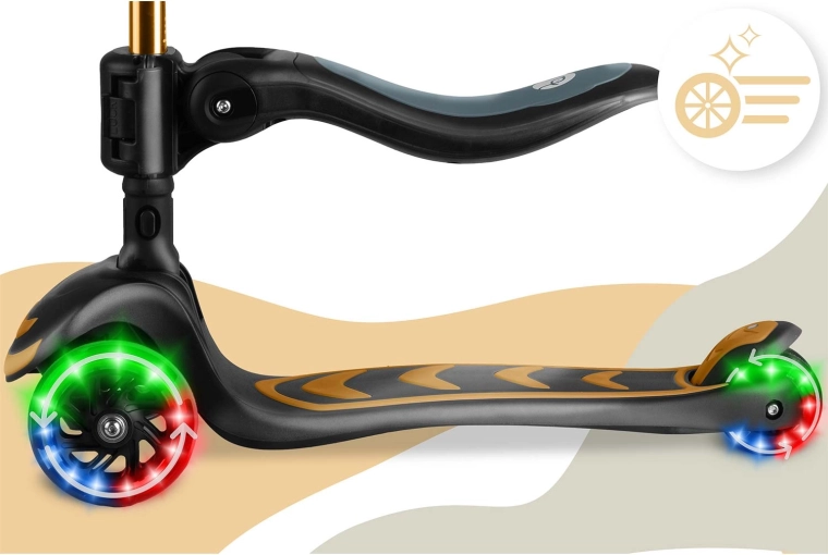Rastúca konštrukcia s výškovo nastaviteľnými riadidlami a výškovo nastaviteľným, odnímateľným sedadlom sa prispôsobí rýchlemu rastu dieťaťa. Svietiace LED kolieska s dyynamom sa rozsvietia pri jazde – bez potreby batérií – a zvyšujú viditeľnosť aj zábavu.