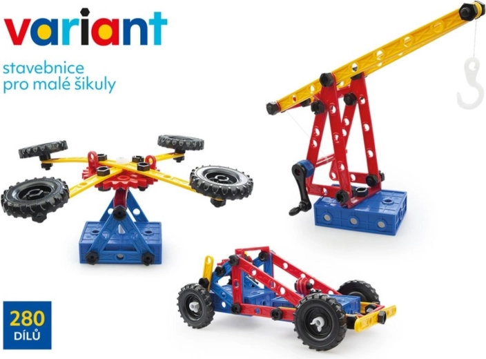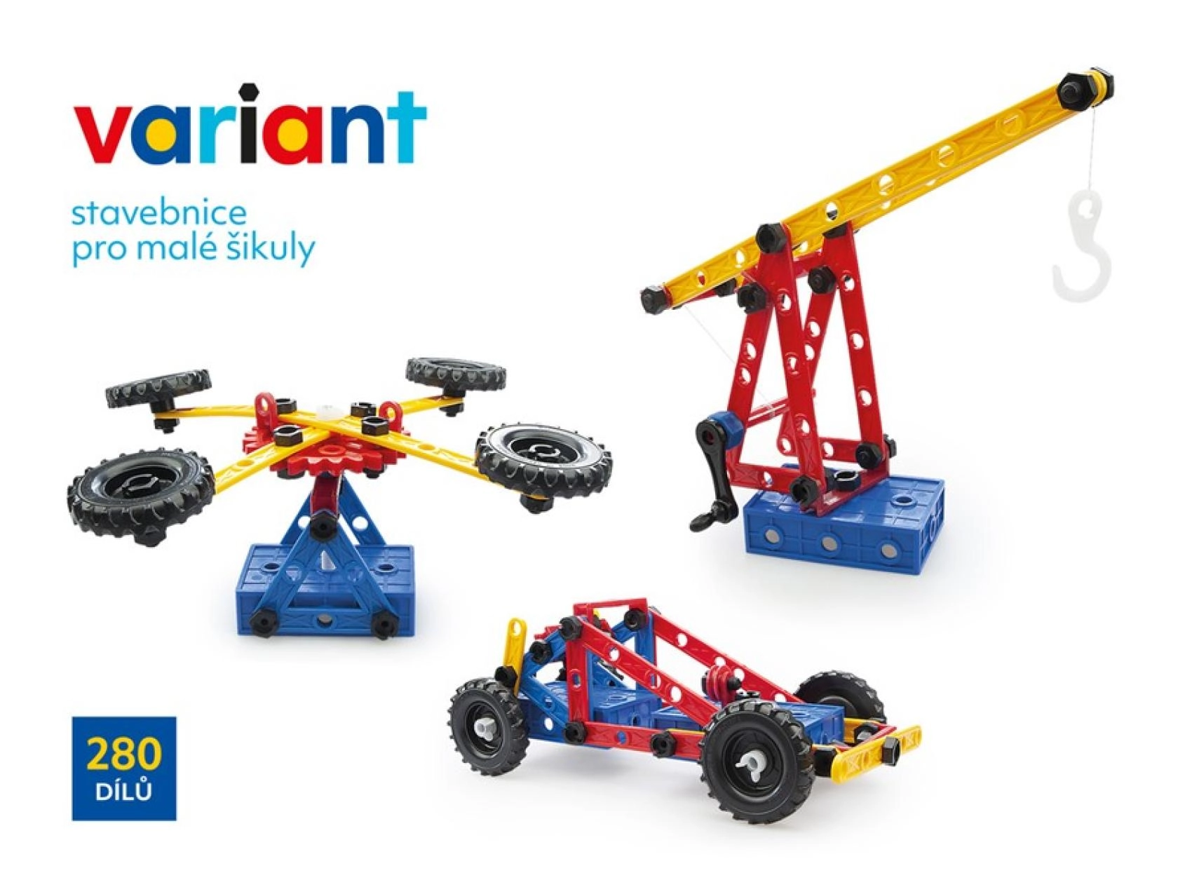 Objavte kreatívny svet s plastovou stavebnicou Variant o 280 dieloch, ktorá rozvíja jemnú motoriku, priestorovú predstavivosť aj logické myslenie. Vďaka pevným skrutkám a matičkám, veľkým derovaným panelom a ozubeným kolesám s reťazou deti postavia autá, lietadlá aj lode – a to znova a znova.