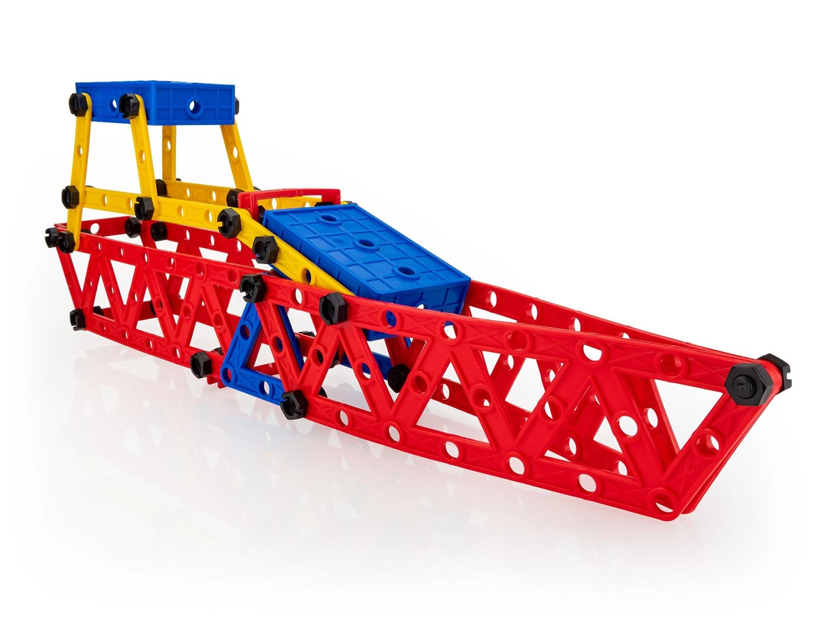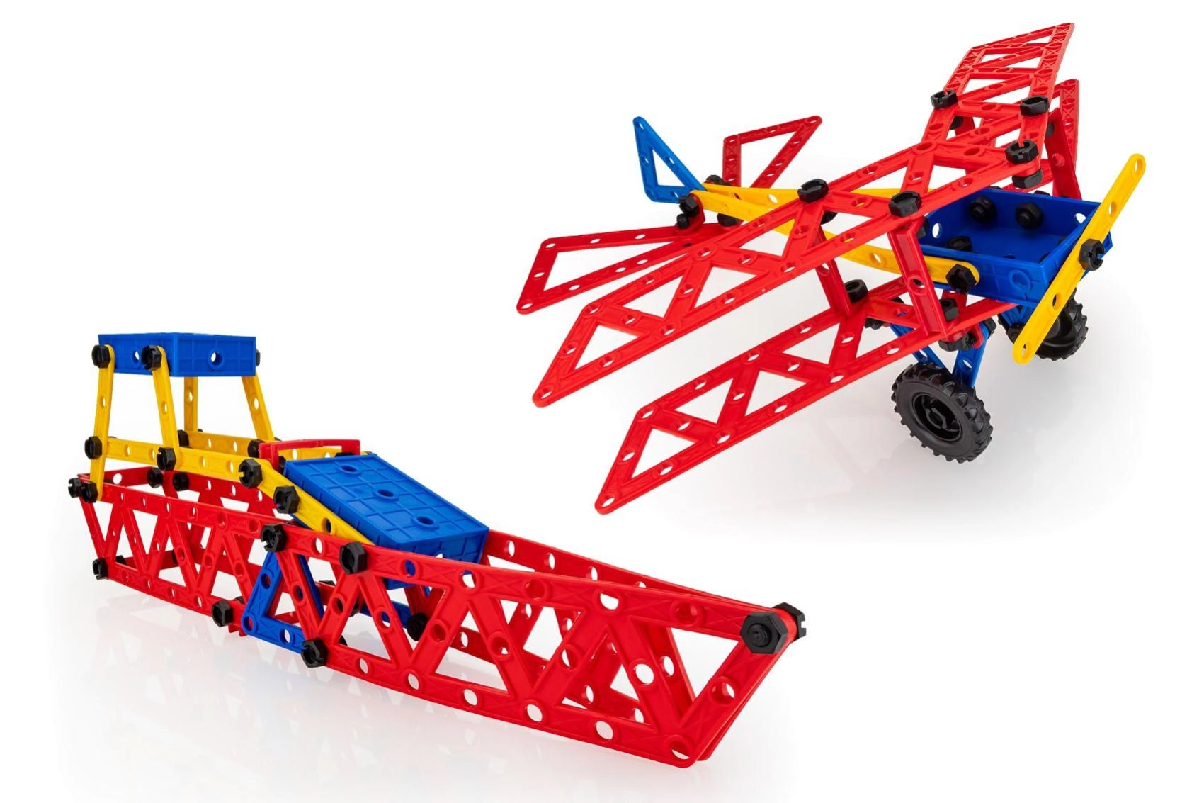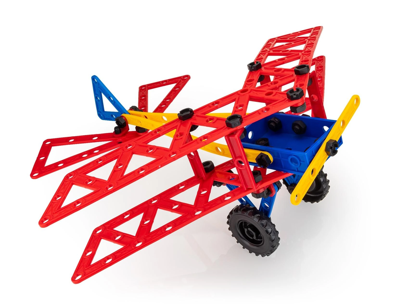 Vďaka variabilným dielom možno vytvárať najrôznejšie konštrukcie – od dvojplošníka cez vozidlá až po lode. Veľké perforované panely, spojky a nosníky sa ľahko kombinujú, takže je stavebnica skvelá ako pre začiatočníkov, tak pre malých konštruktérov, ktorí chcú skúmať princípy mechaniky a základné fyzikálne javy.