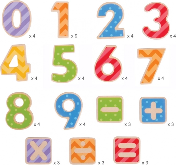 V tejto sade nájdete celkom 56 dielikov, ktoré zahŕňajú číslice 0 až 9 a rôzne matematické operátory. Magnetické čísla sú perfektnou pomôckou pre tabule, čo umožňuje deťom ľahko tvoriť príklady a príbehy z čísel. Pomáhajú rozvíjať obratnosť a koncentráciu a ich použitie je bezpečné.